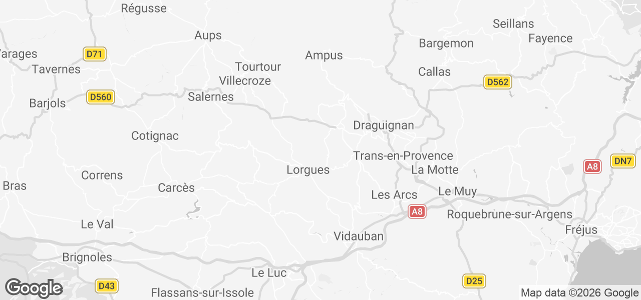Draguignan (old capital of the Var department) is 10 km away. of Lorgues.