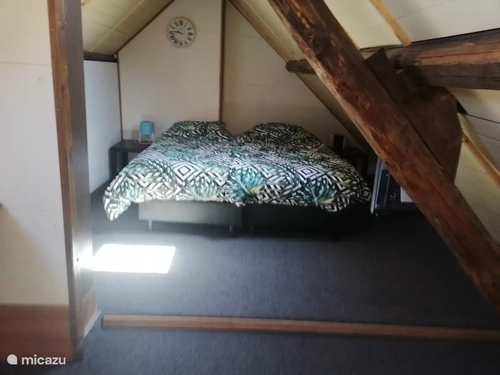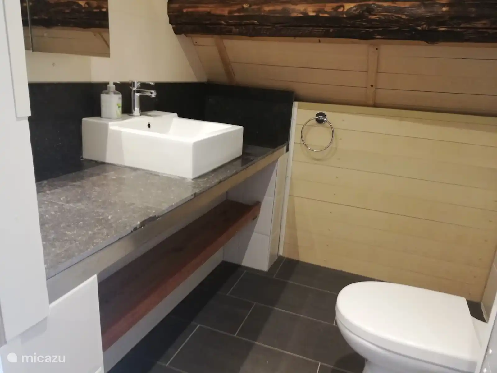 The attractive attic space has its own sink, toilet and two sleeping places.
