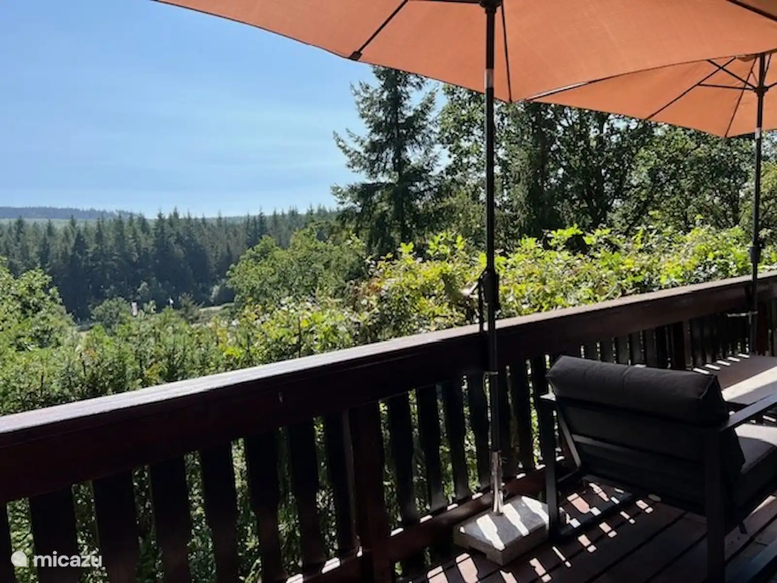 From the living room you go through patio doors to a spacious balcony with umbrellas and a lounge set. Here you can chill or BBQ.