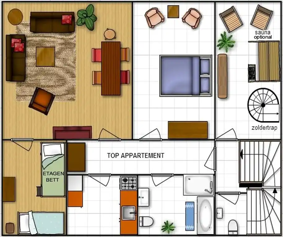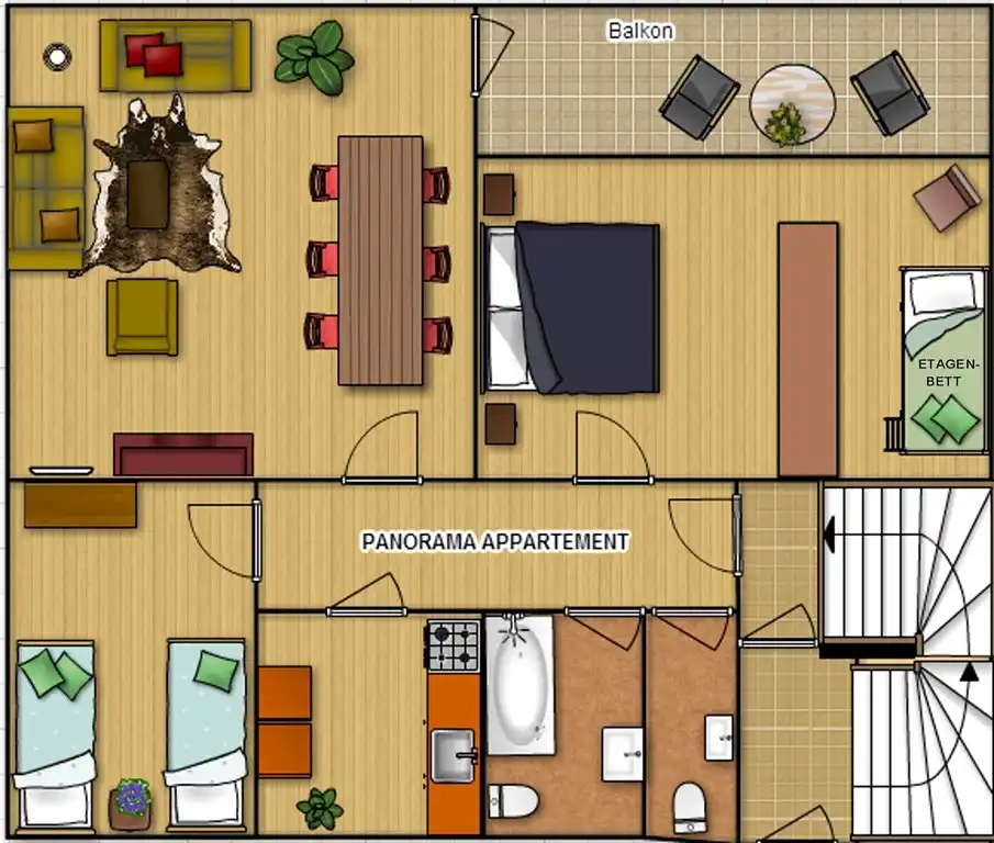 spacious apartments and an additional children's room in the attic