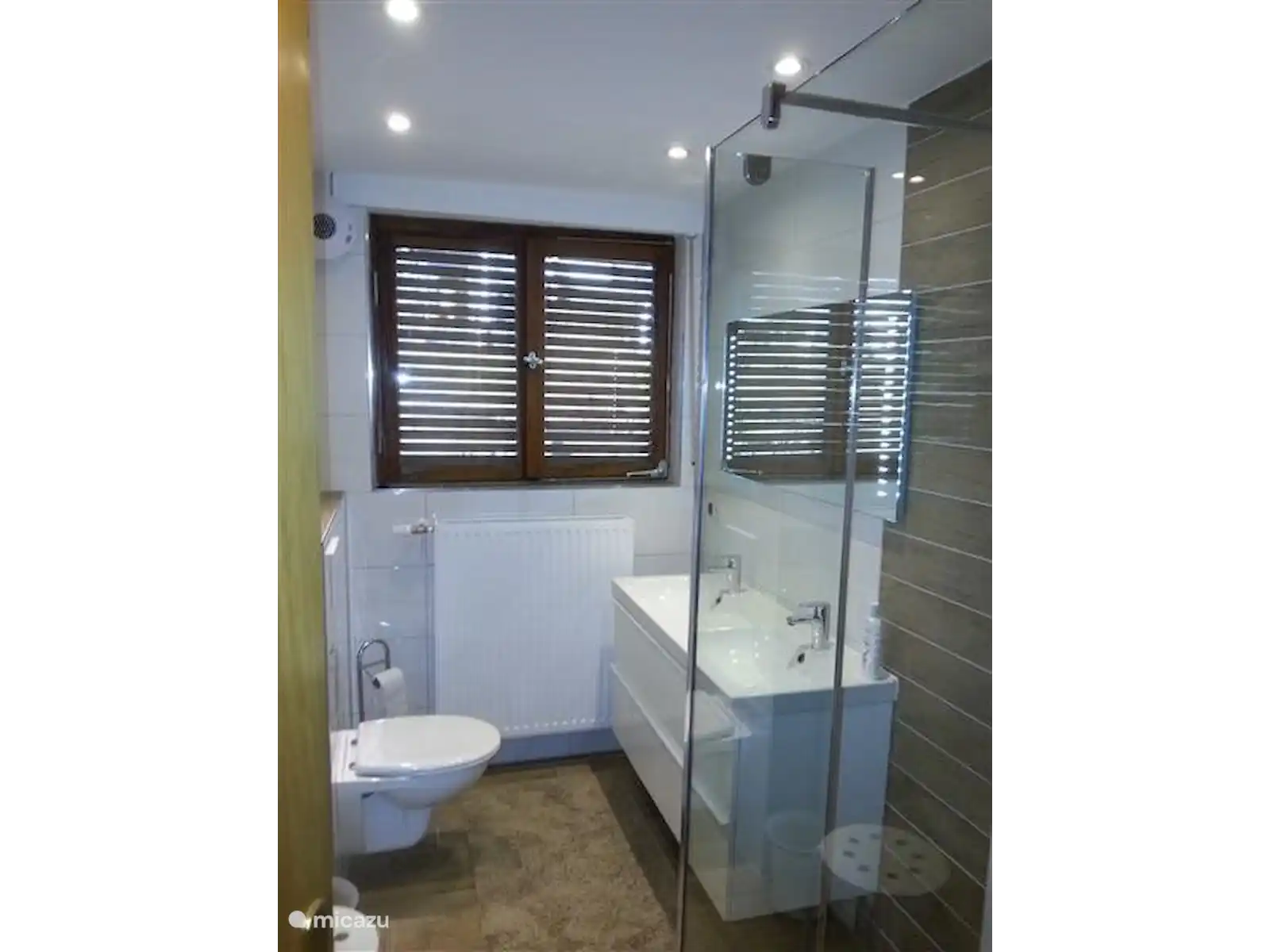 Ground floor: (hall, living room(stereo, large flat screen TV), eat-in kitchen(microwave, dishwasher), bedroom(2x single bed), bedroom(2x single bed), bedroom(2x single bed), bedroom ( 2x single bed) modern bathroom (walk-in shower, 2x washbasin, toilet), 1 extra toilet