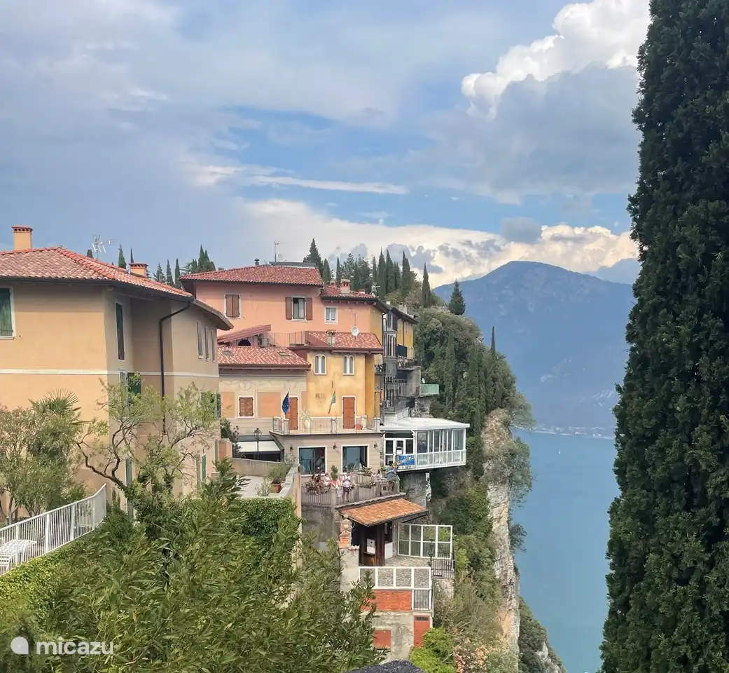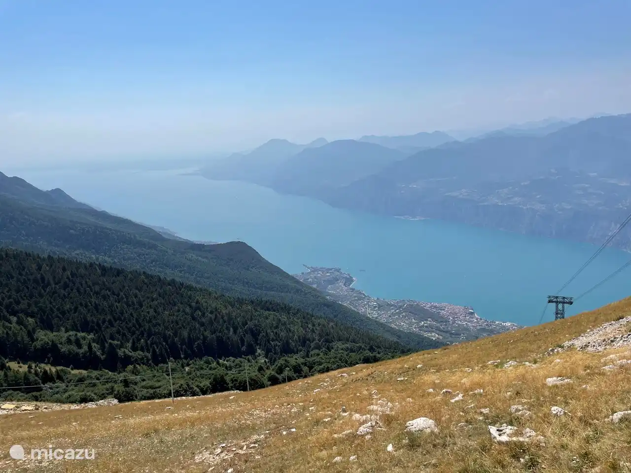 From the living room and the terrace you can enjoy an enchanting view of the mountains and Lake Garda. Outside, a spacious terrace with a cozy garden set awaits, where you can relax, eat or just enjoy the nature around you.