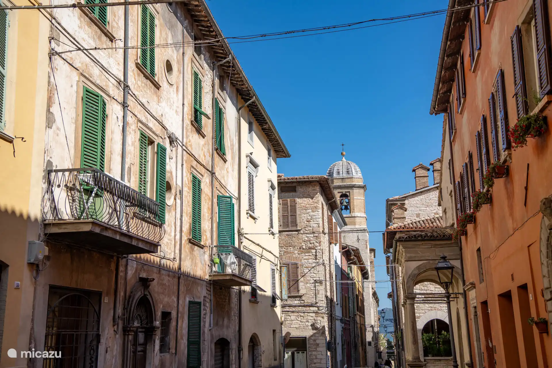 The beautiful grounds are located right next to the "bustling" ancient city of Cagli. You can walk there in 8 minutes. In the city you will find delicious restaurants, a beautiful theater and cozy terraces. You can also wander through the small streets with its authentic shops. In the summer, there is always something to do in the city. You stay on a mountain in peace and walk to the city.