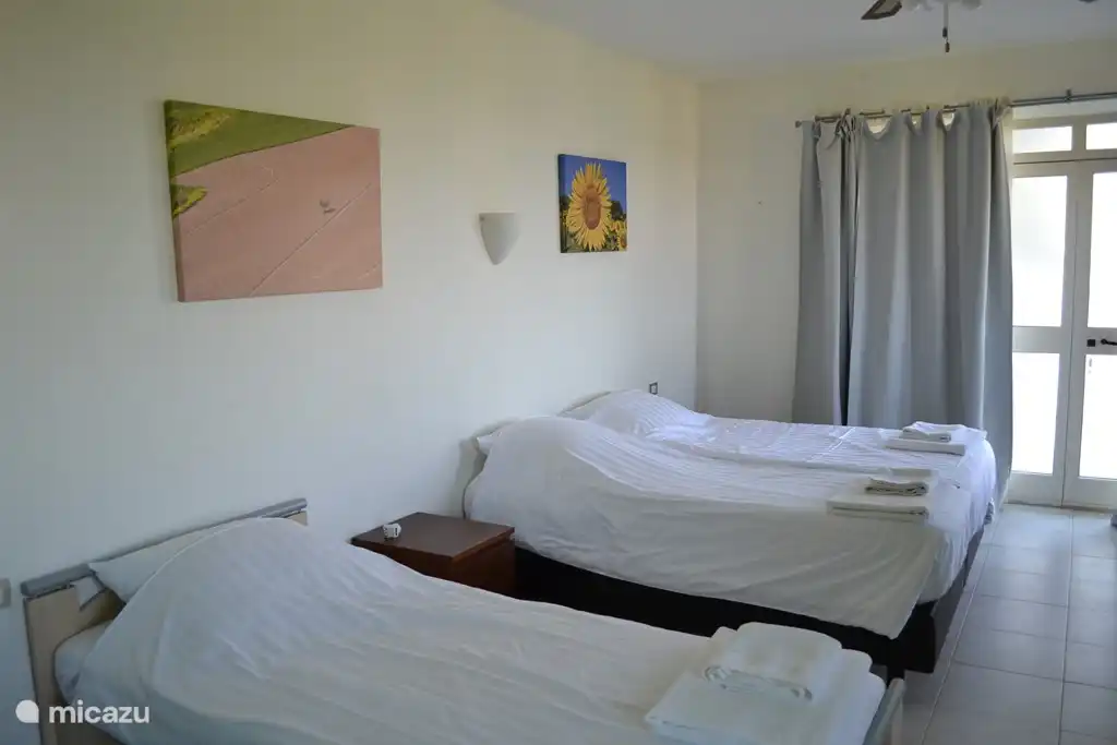 - 1 bedroom for 3 people (1 double bed + 1 single bed) + bathroom with shower and toilet.