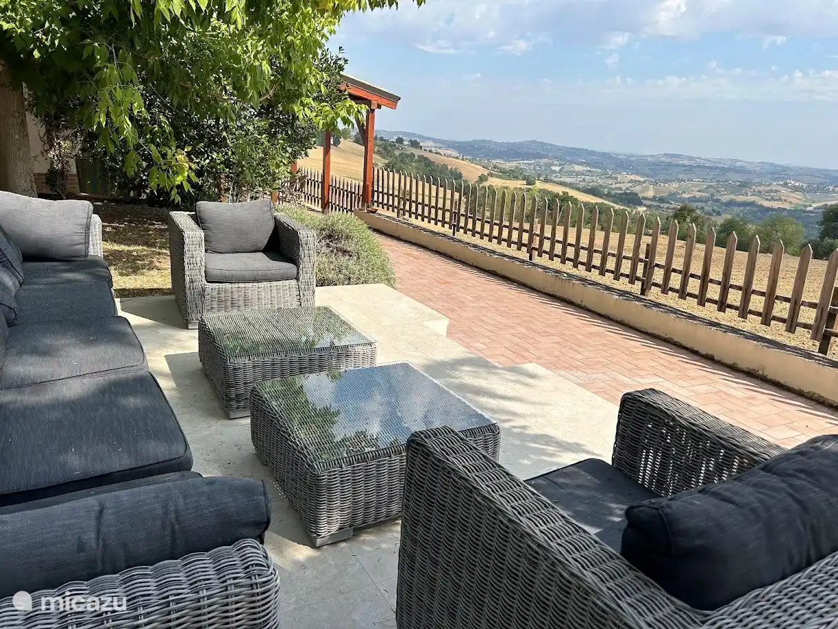 The view is breathtaking. The house is located in the beautiful unspoilt Italian nature and at the same time offers a range of activities and many possibilities in the Italian food culture for every budget and taste. The Marche or 'Le Marche', is a region in Italy that offers you the ideal mix of good food and good wine, nature (Sibillini mountains), beaches (a 40-minute drive away), beautiful towns on the hills or shopping... and without too many tourists! The region of Le Marche offers an excellent climate, warm and friendly people, cultural value, breathtaking scenery – and of course, the local food and wine offerings are definitely worth a visit! This house in nature includes two buildings and a garden.