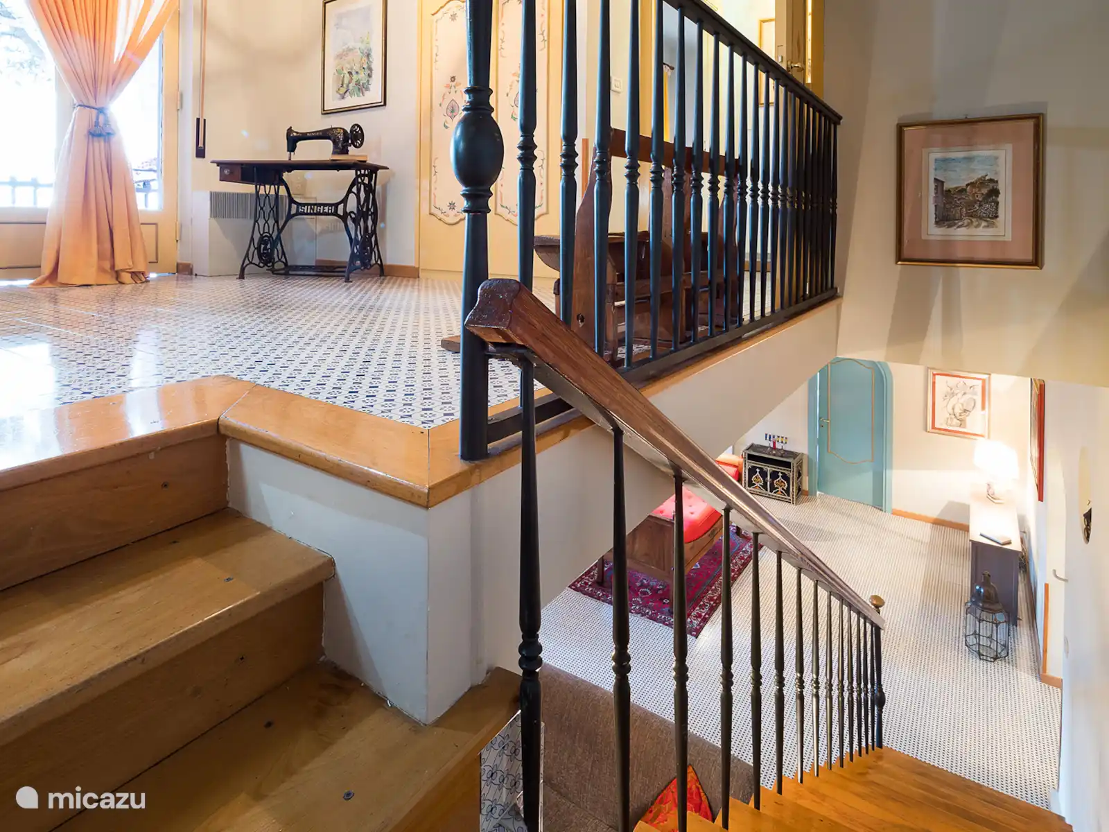 Two flights of stairs lead to the first floor, where four romantic bedrooms await.