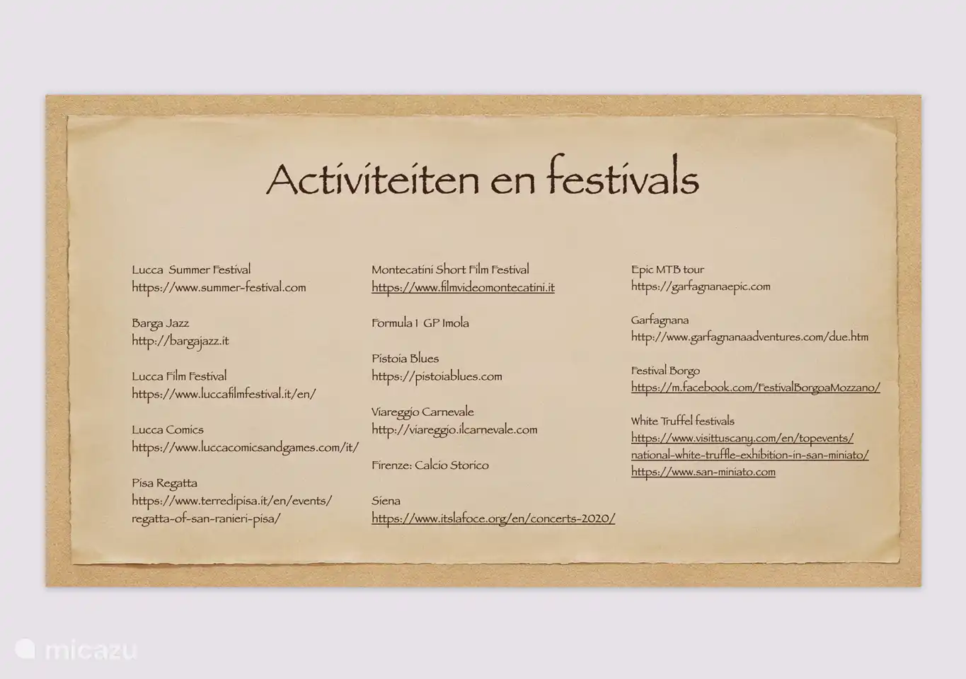 - Nice historical places to visit (Barga, Castelnuovo, Bagni di Lucca)