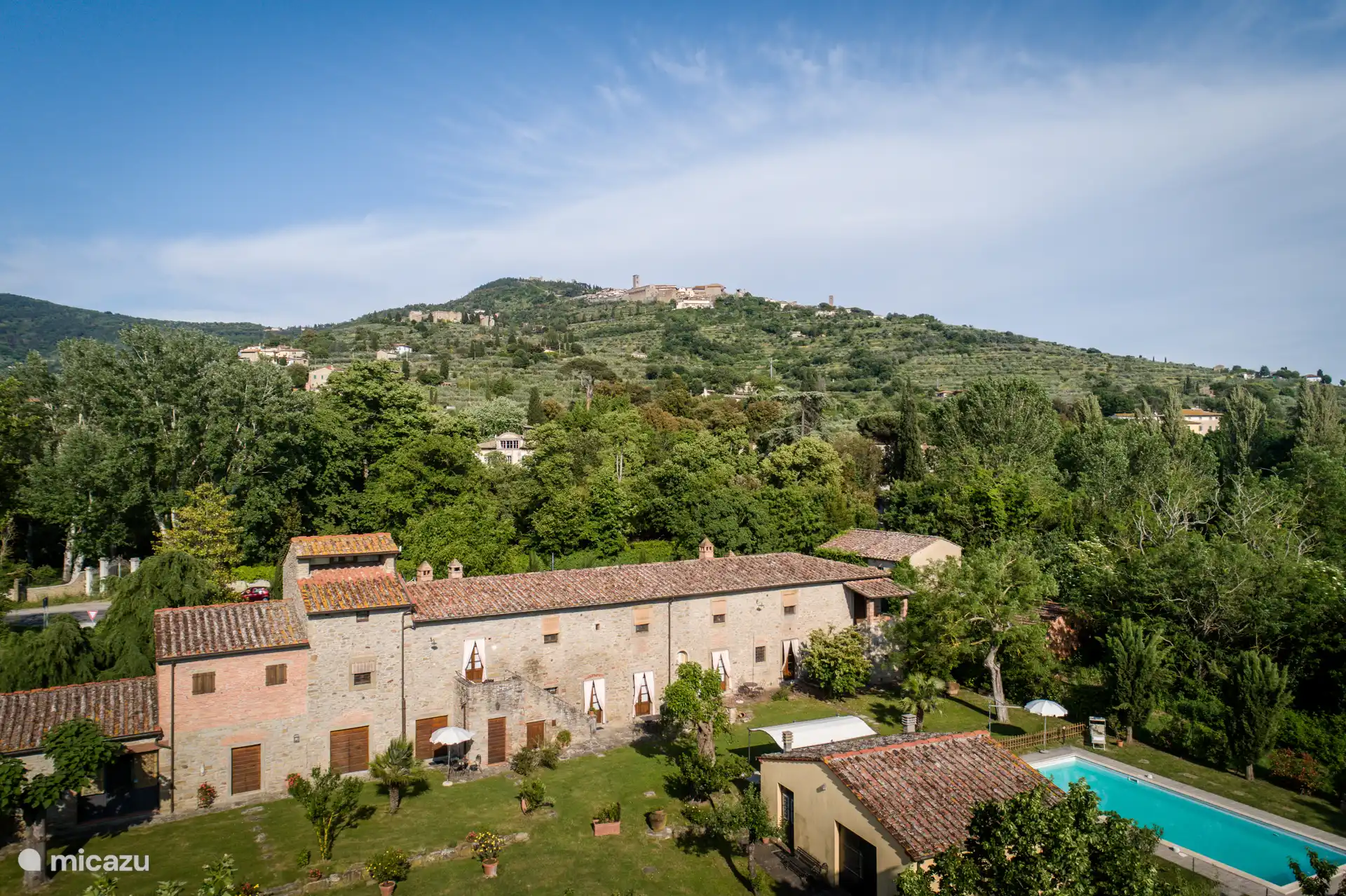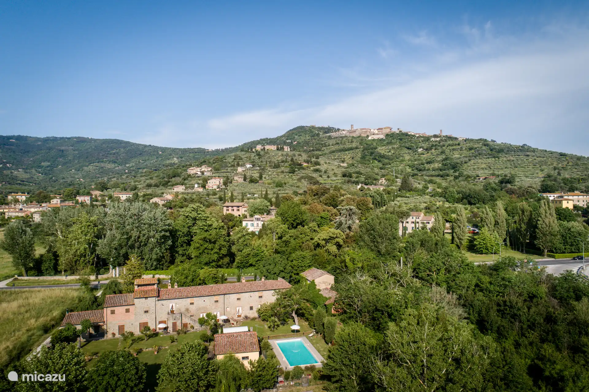 Cortona 4 km, Montepulciano 32.2 km, Pienza 39 km, Siena 74.2 km, Perugia 49 km, Florence 100 km, Rome 206 km