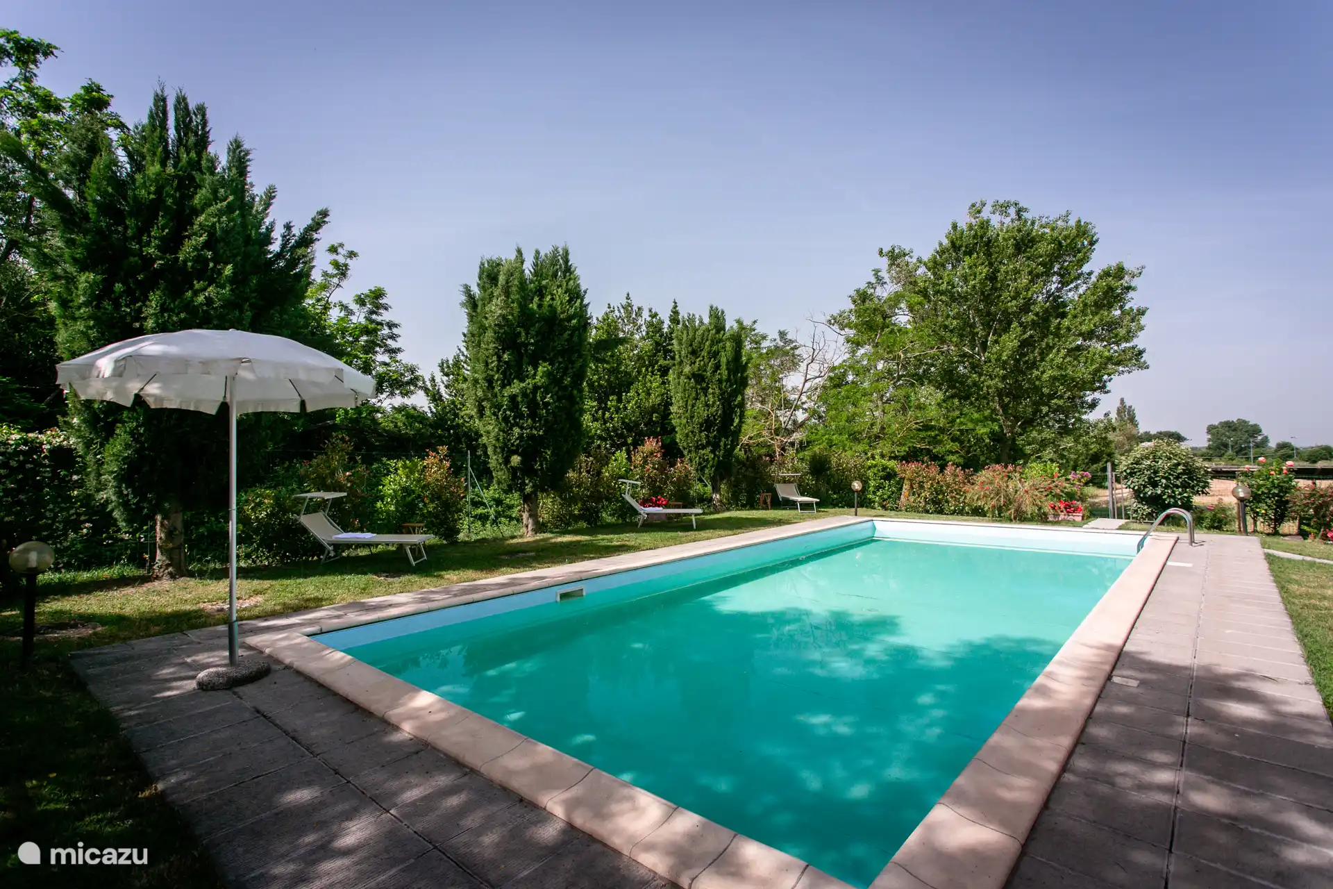 Weekly linen change, private and totally fenced garden, private parking, swimming pool with solarium barbecue, garden furniture, TV sat, only small and medium size pets allowed at the extra price of 30 € per week, free WiFi connection, heating on consumption, laundry service on request,highchair and baby cot on request, hair dryer, fully equipped kitchen complete with: oven, fridge,freezer,dishwasher, American coffee machine, Italian moka.