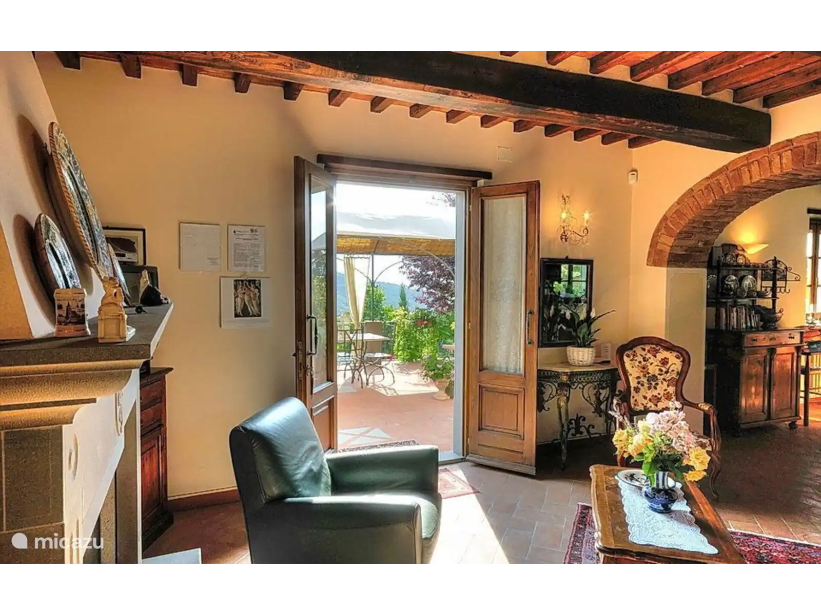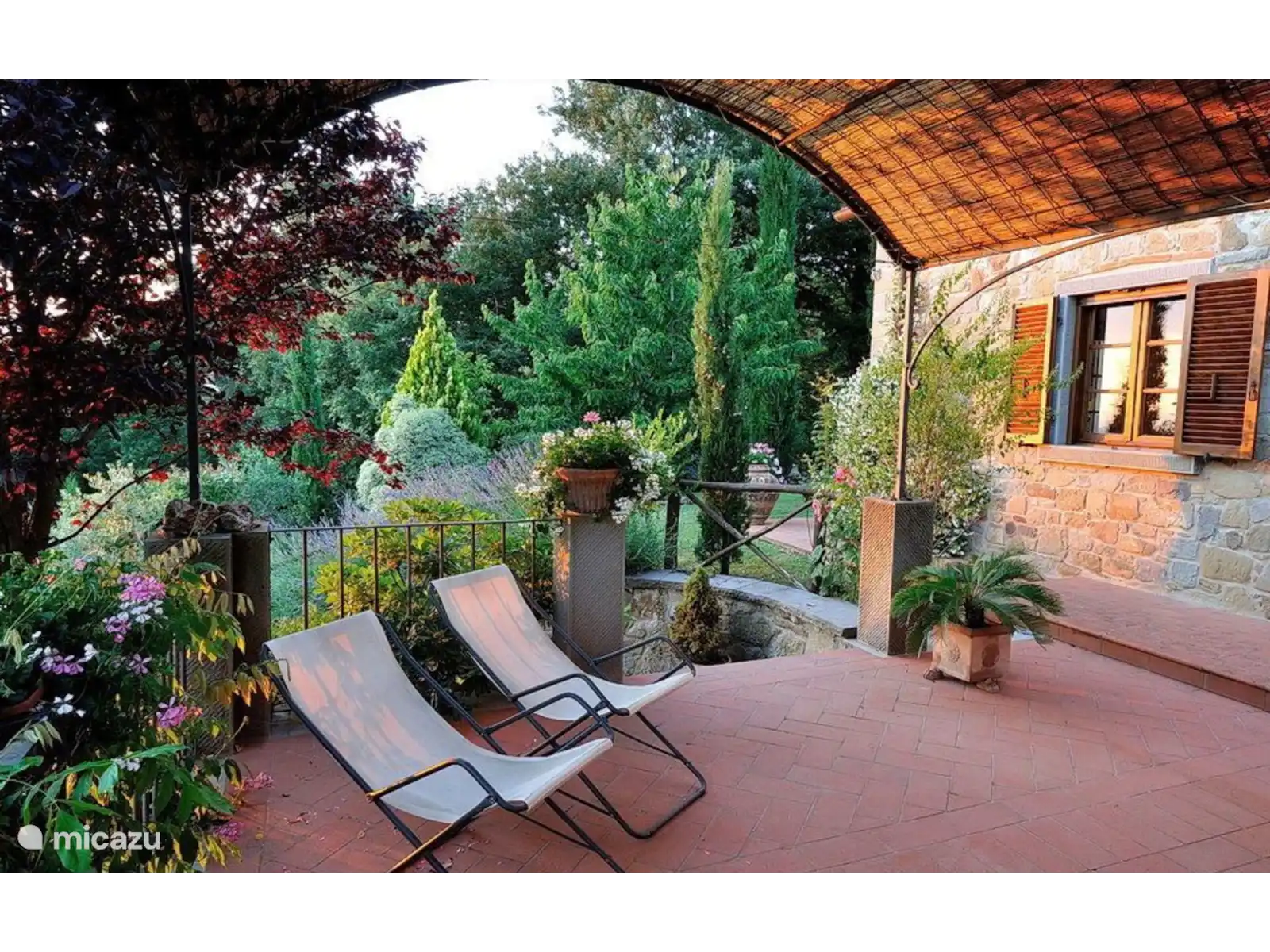 The properties are surrounded by extensive cared for outdoor areas full of flowers and plants; a private pool (4 X 8 meters, minimum height 1.10 meters, maximum height 1.80 m - open from May 1 to October 15), lies in a panoramic sunny position throughout the whole day. The pool area is equipped with sun beds and parasols to make your moments under the Tuscan sun pleasant and relaxing.