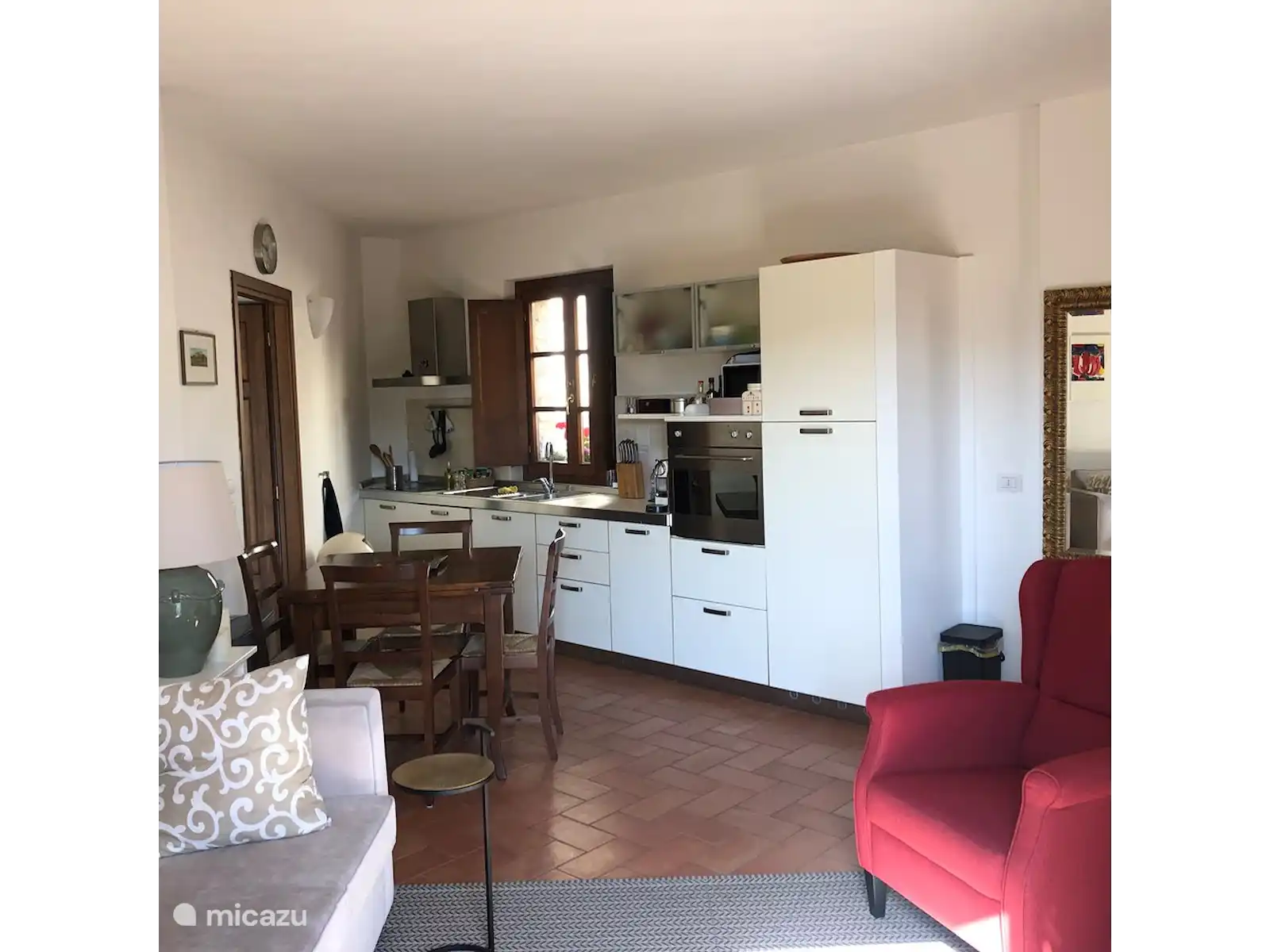 The village of Gaiole in Chianti is located below the complex, you can walk to the cozy square with supermarket, terraces, ATM, etc. In the other direction you walk directly into the vineyards. Many beautiful places, nice restaurants, old monuments, everything a short distance away. Siena 25 minutes, Florence an hour. Chianti is a beautiful and still quiet region, even in high season. The restaurants are fantastic and very affordable! Wine tastings nearby in famous chateaus or just at the farm.