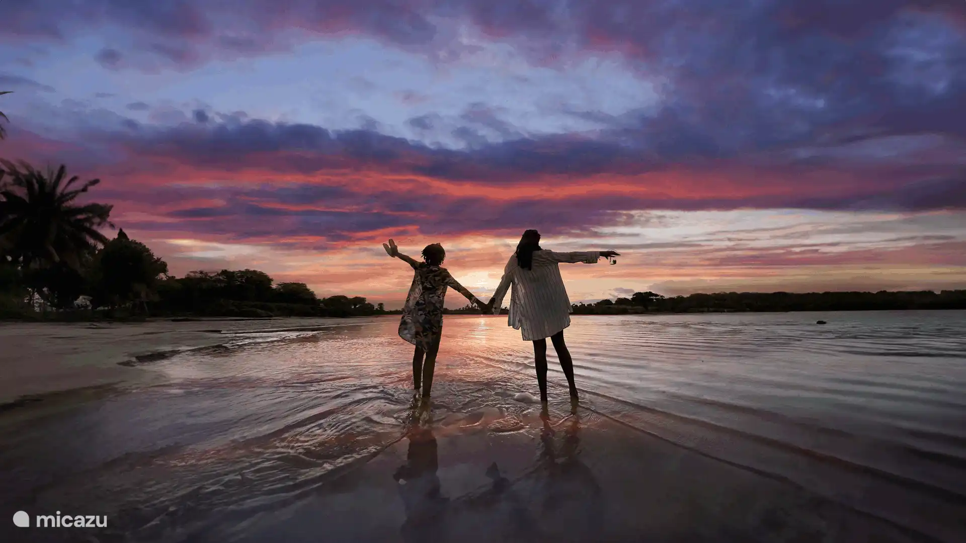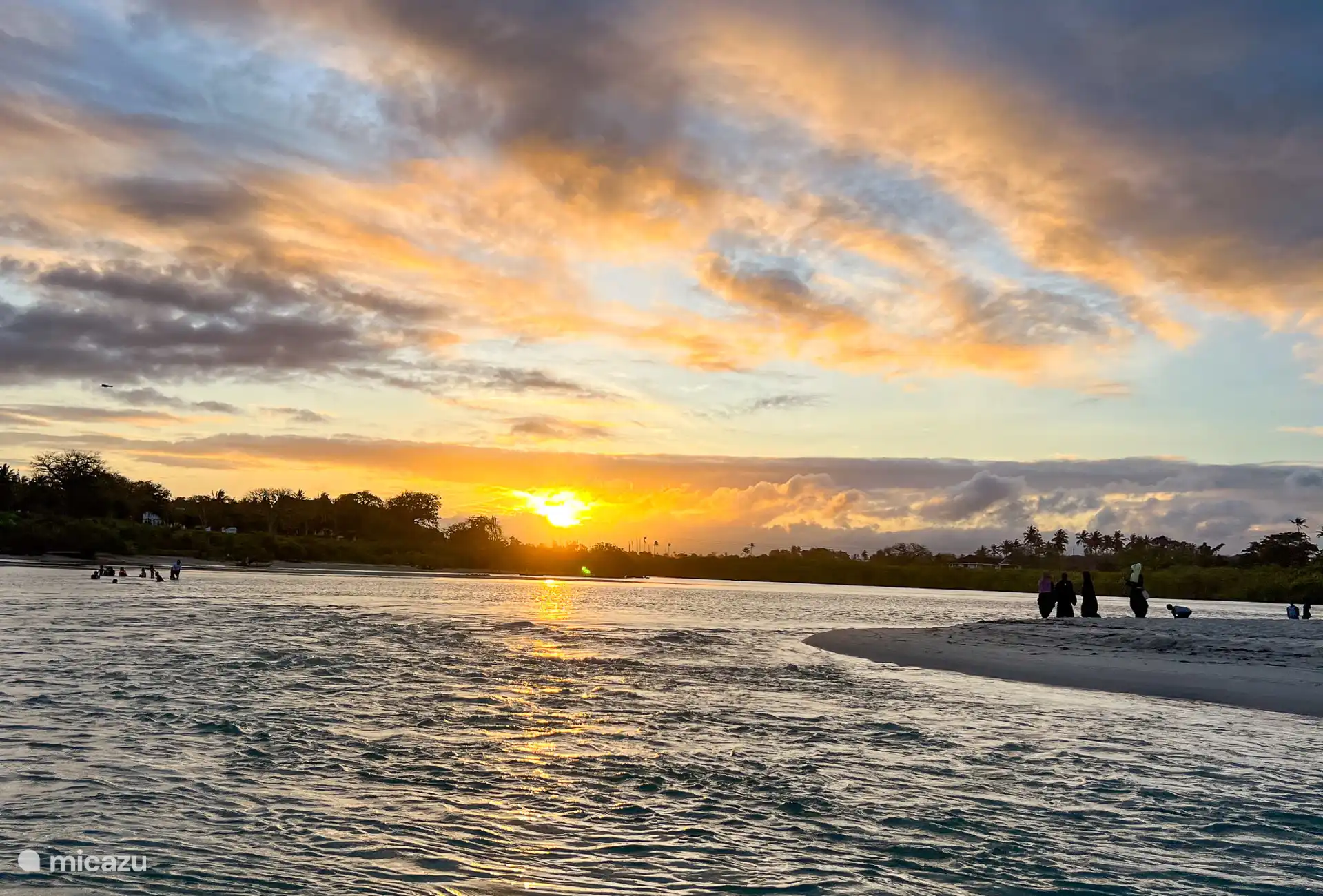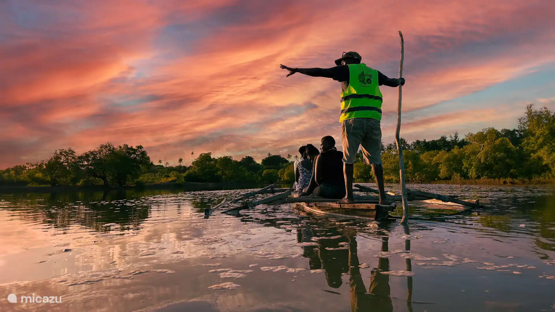 Kongo Beach is 400 meters away, at the mouth of a small river. It is a beautiful sandy beach, where you can watch the sun set over the Congo River. It is surrounded by palm trees and 'baobabs', baobab trees.