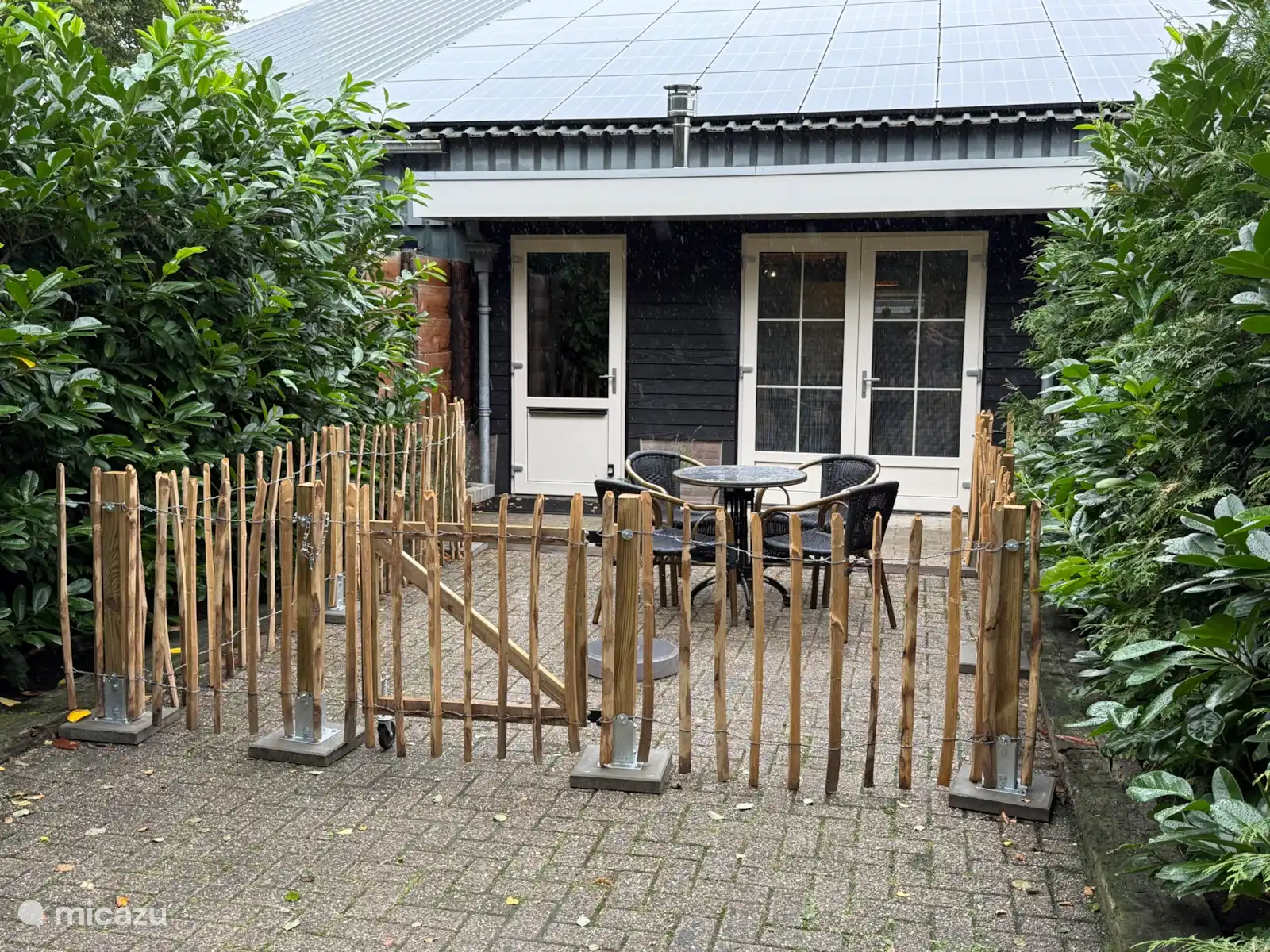 Relax completely in the luxurious apartment with bedroom on the ground floor and king-size bed of 180x200cm. The cozy sitting area with attractive pellet stove and garden doors overlooks a tree wall. The spacious kitchen unit is complete and fully equipped: spacious fridge-freezer, a combi oven microwave, induction hob, dishwasher, kettle and Nespresso coffee machine. Bathroom with toilet, washbasin and a spacious shower with a rain and hand shower. There is also a washer / dryer here which can be rented optionally.