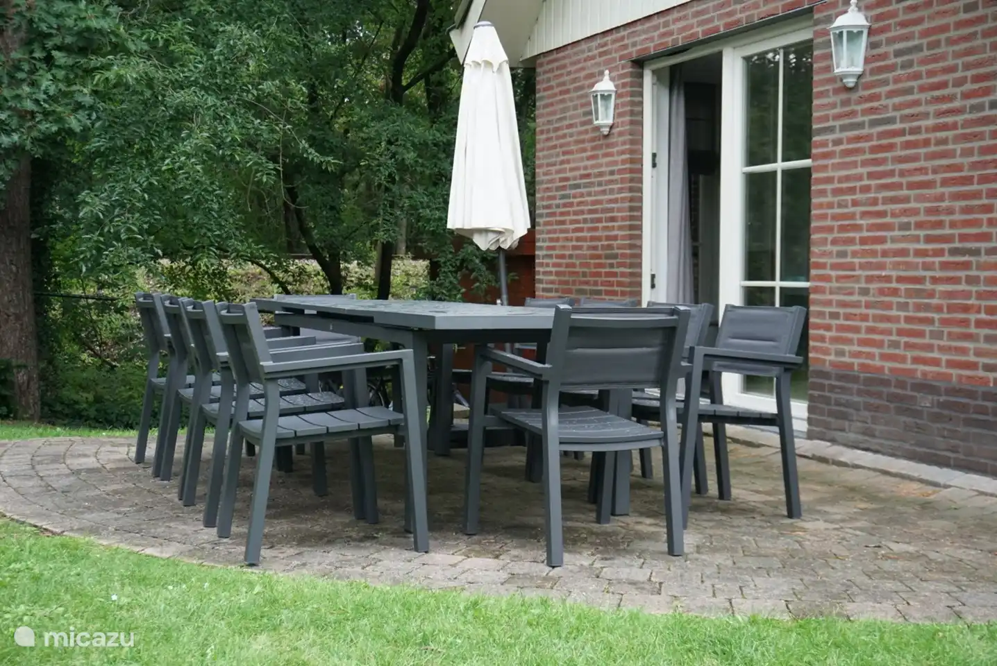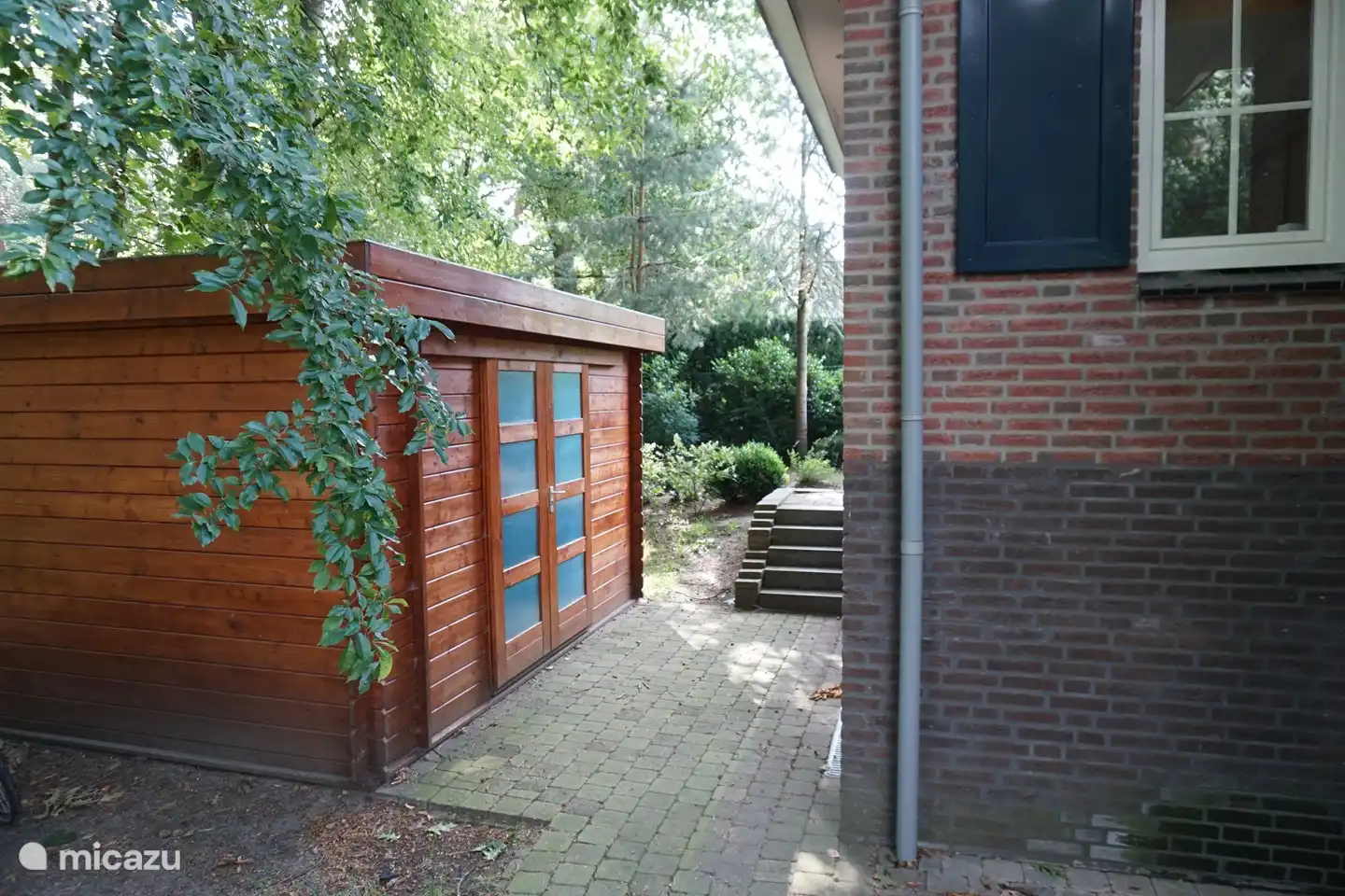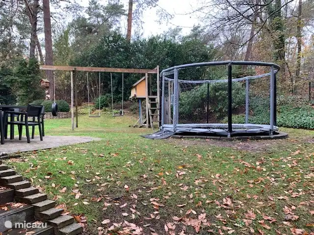 Our holiday home Q18 is accessible via a small staircase to the entrance. Through the front door you enter the hall where the meter cupboard, toilet and storage room (washing machine, dryer and coat rack) are located. The living room, kitchen and dining area can also be found on the ground floor. The living room has a cozy gas fireplace with remote control. From the living room and dining area you have access to the garden through the sliding doors (tilt/tilt). The kitchen is equipped with a dishwasher, gas stove with electric ignition, extractor hood, combi microwave and two refrigerators, one with freezer compartment. A coffee filter machine, Nespresso coffee machine and kettle are also available. The stairs lead to the first floor. Here are two small bedrooms (sloping roof), a loft and bathroom with small shower (sloping roof) and sink. You can also take a staircase down to the basement where there are three bedrooms, a bathroom with bath/shower combination, washbasin and infrared cabin and in the hall is a second toilet. Outside is a wooden shed. Here you will find, among other things, the cushions for the lounge set and parasols. On the other side of the garden is the lounge set with outdoor fireplace. Two private parking spaces are indicated by a sign Q18 at the house. Through the gate in the backyard you have access to the forest. The garden is completely fenced and is equipped with a sprinkler system. The irrigation system switches on automatically on Tuesdays, Thursdays and Saturdays at 21:00 and the irrigation takes 100 minutes. The gutter light turns on automatically.