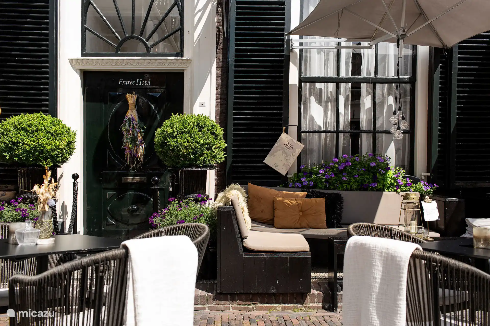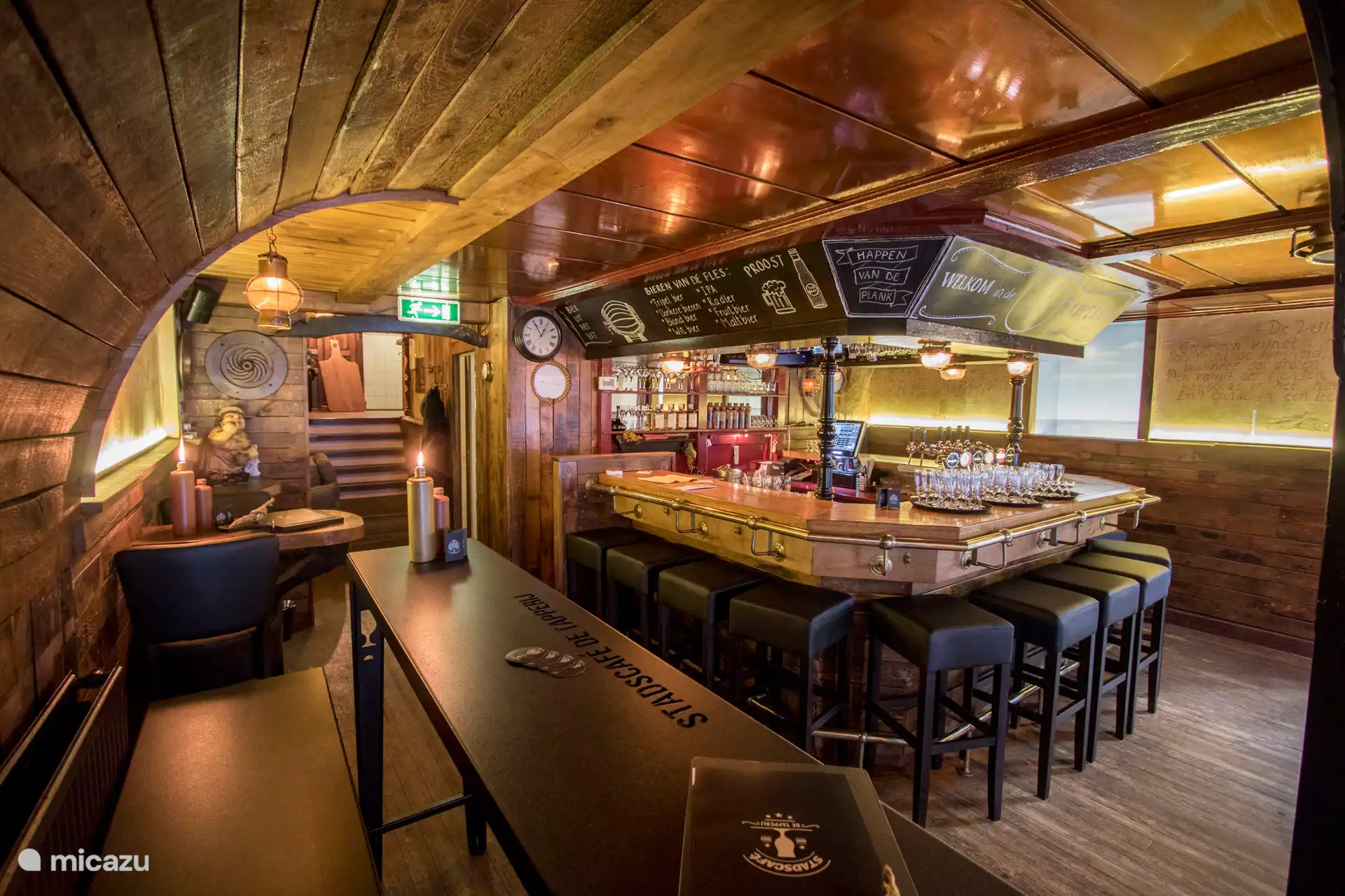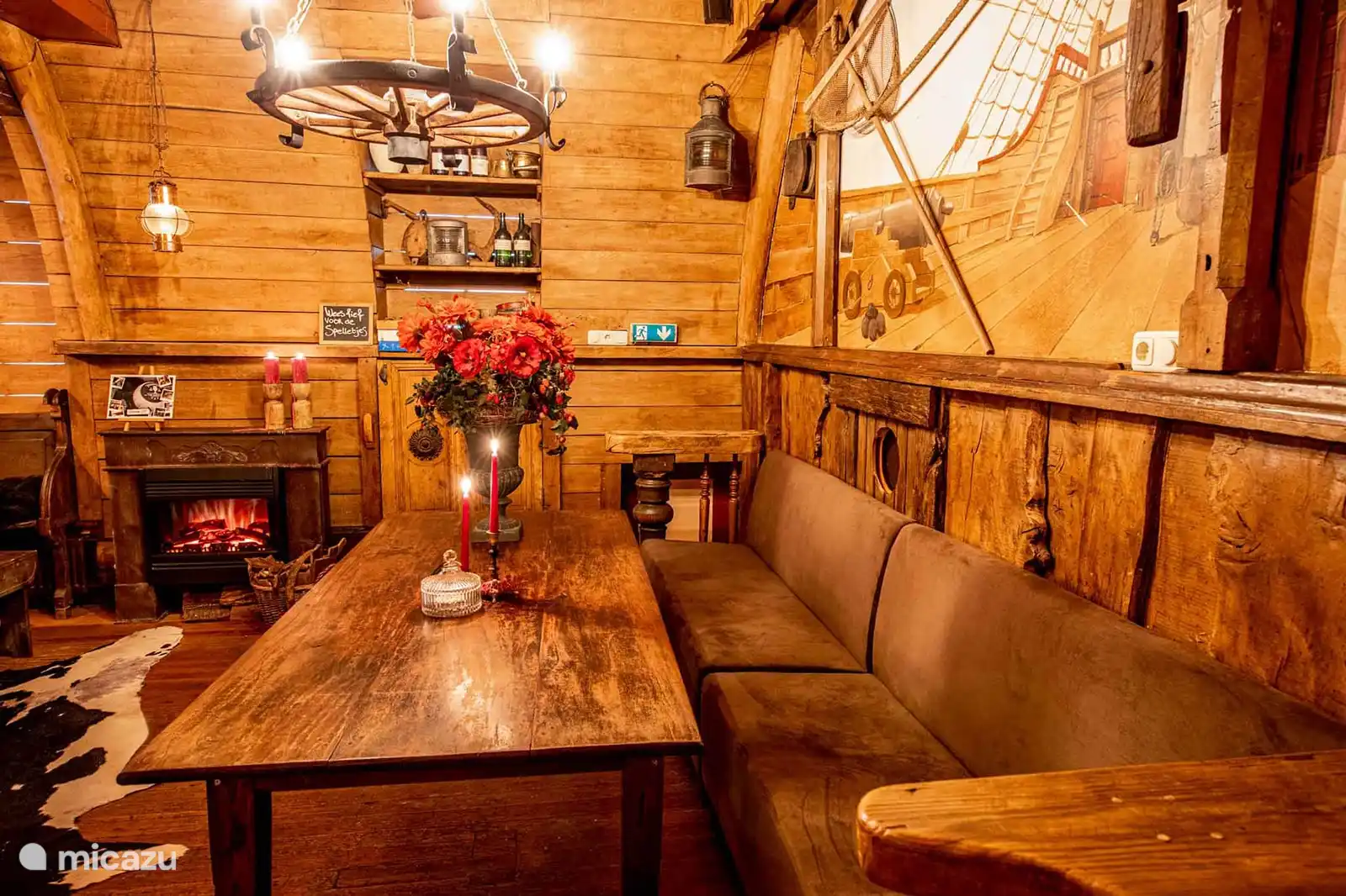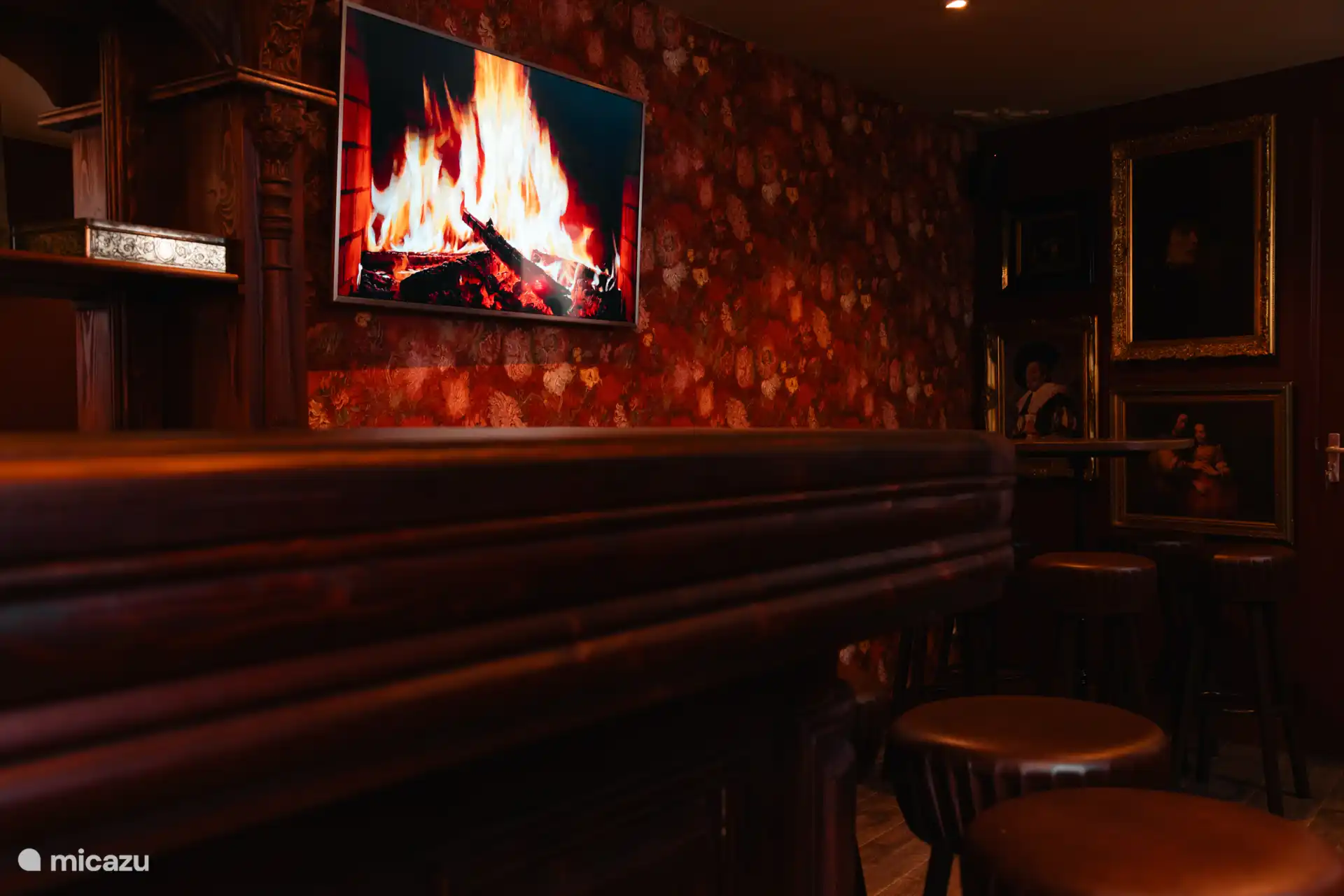 ''An intimate luxury holiday home in the Veluwe in the city center of Elburg. With a vintage bar, home cinema and children's playroom. A cozy vacation home with comfortable seating, where guests can relax with a book or a board game.