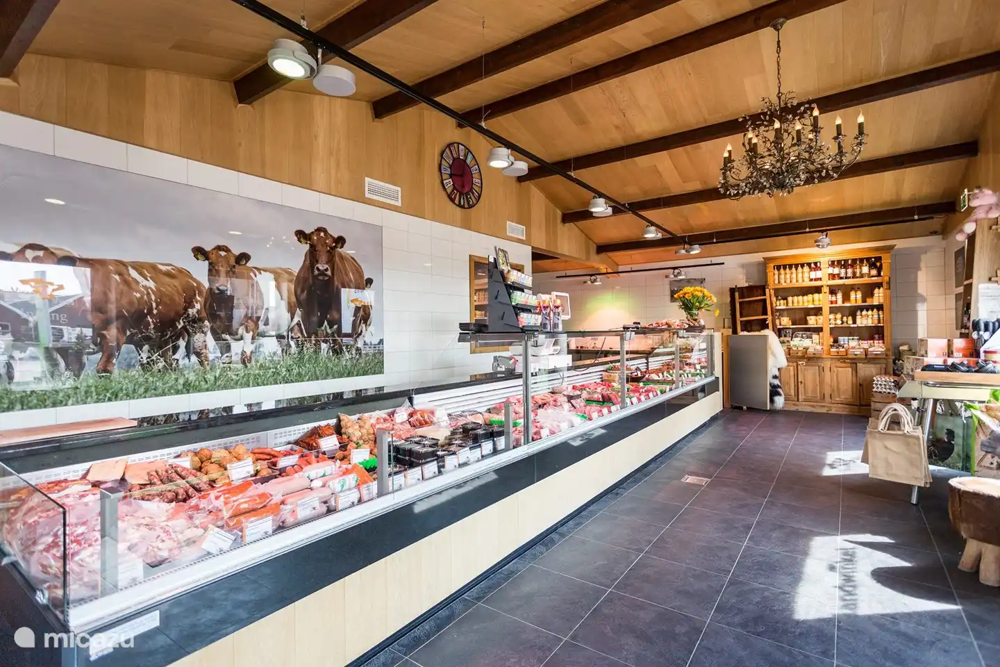 The kitchen is located at the front of the bungalow. The kitchen is fully equipped. In addition to the basic facilities, a combination oven and a dishwasher should not be missing during your holiday. A washing machine and dryer are available in the storage room.