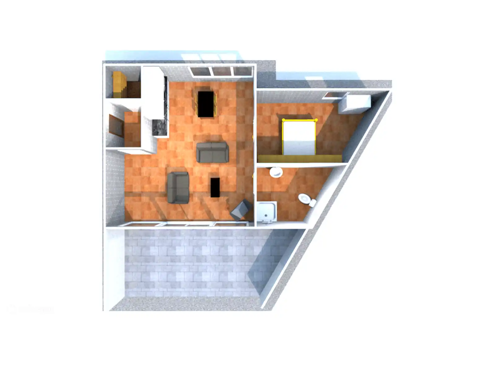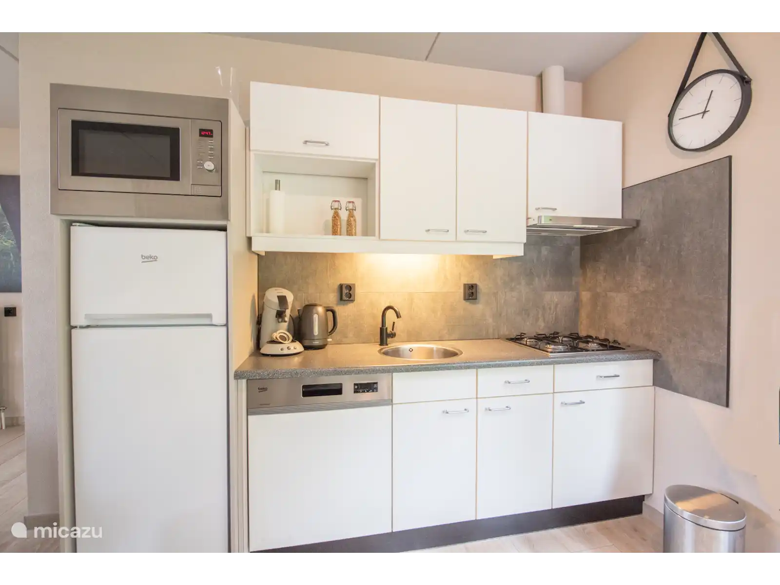 Enjoy the convenience of this terraced bungalow, which offers all the amenities you need for a carefree stay. Discover the spacious room with an open kitchen, equipped with a dishwasher, large fridge-freezer combination, combination microwave and gas hob, so you can cook and enjoy to your heart's content.