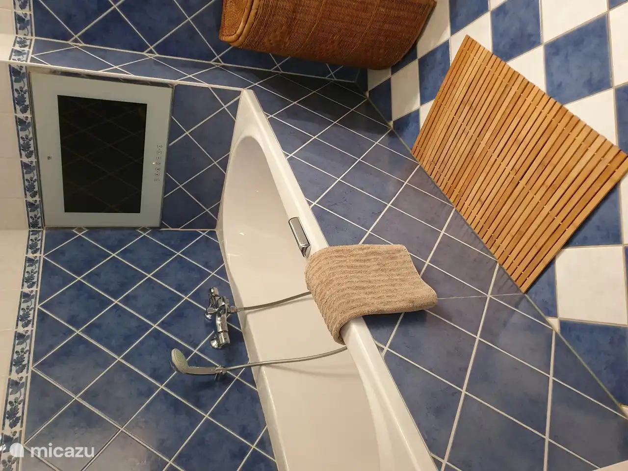 Large bathroom with Whirlpool bubble bath and waterproof tablet. That's super relaxed watching a movie! Separate shower cubicle, 2 sinks with huge mirror, laundry basket and underfloor heating. Toilet is separate in the hall.