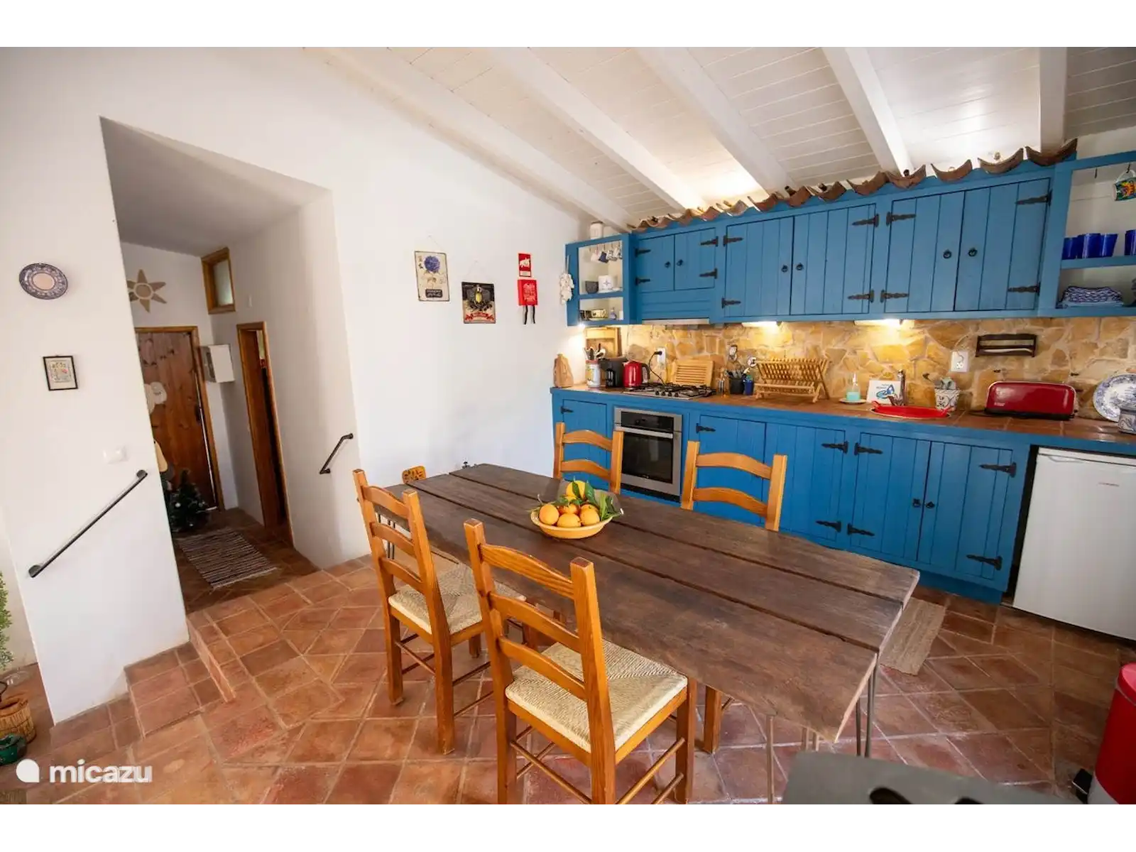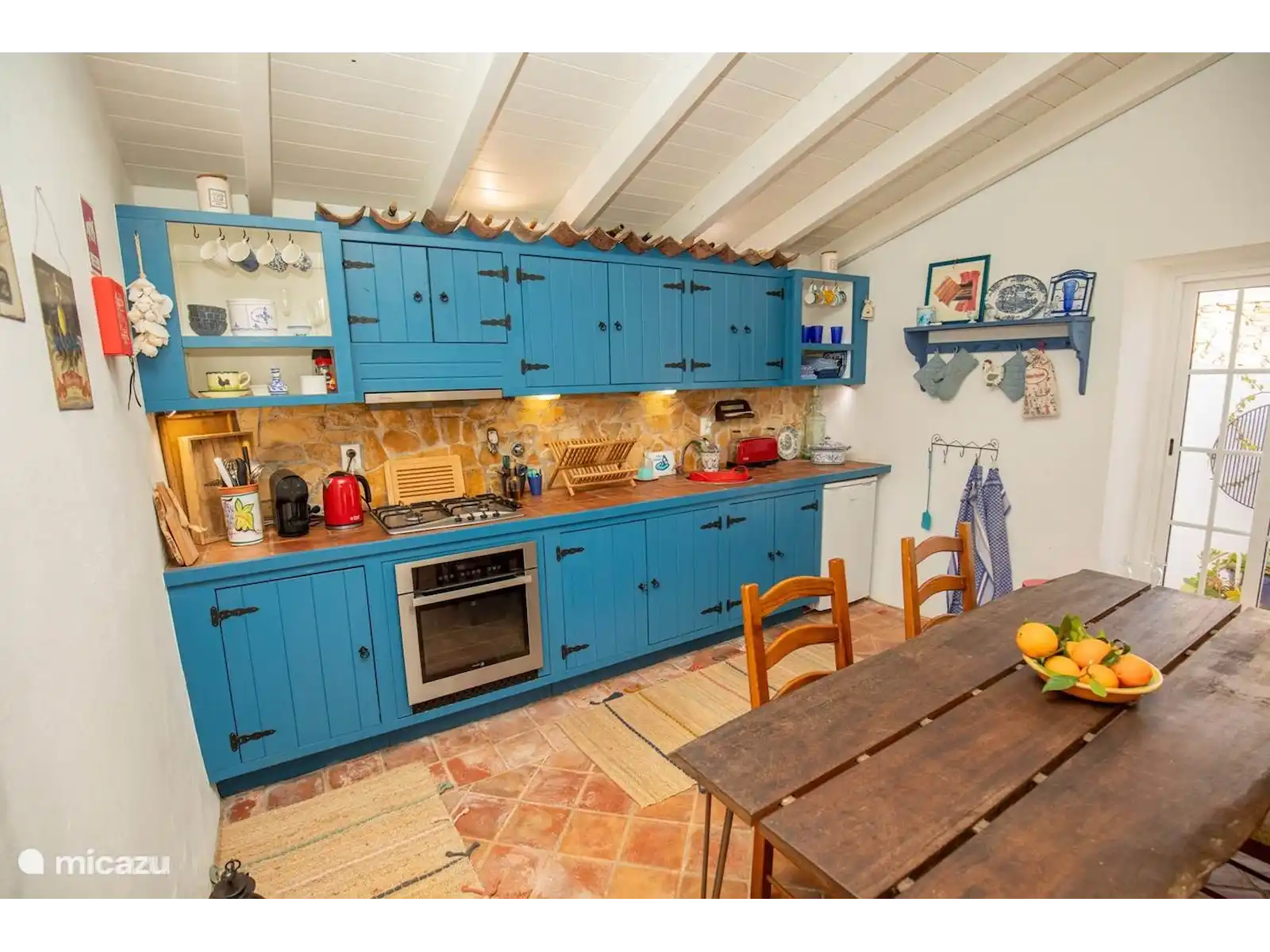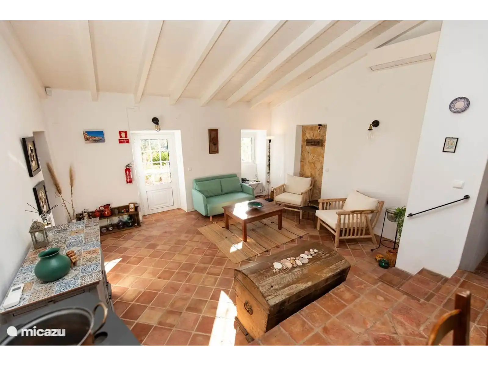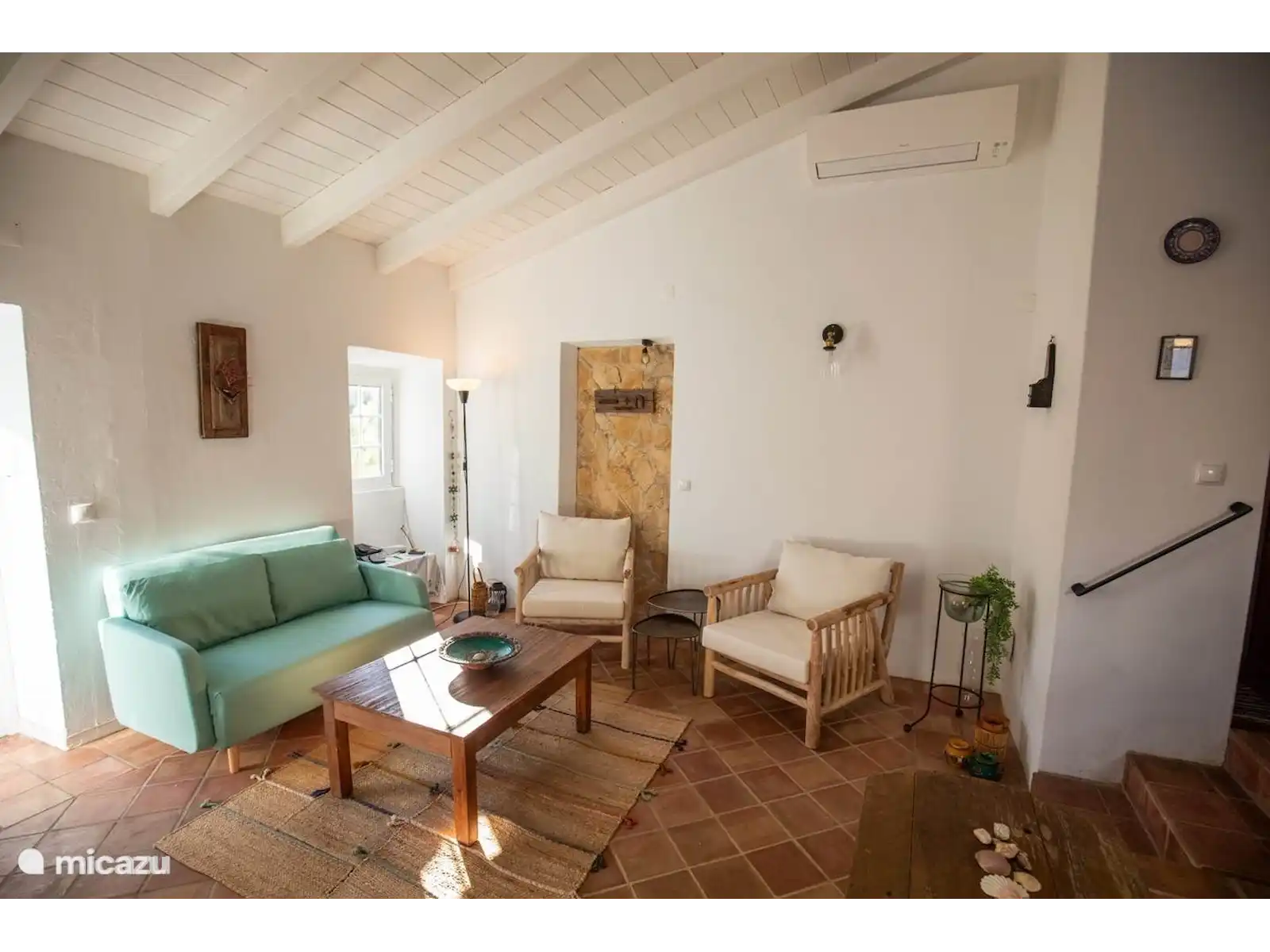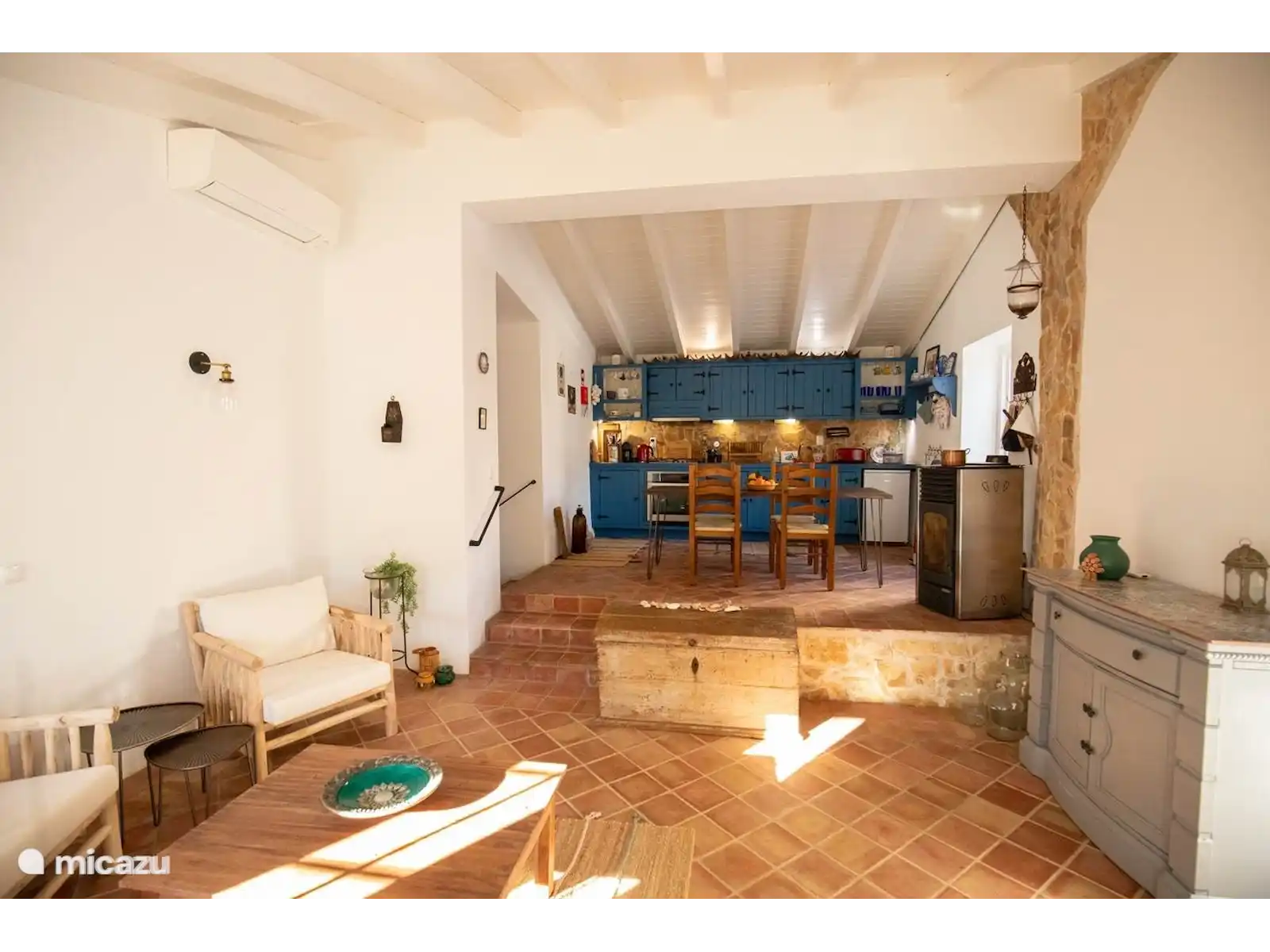 A charming old farmhouse, carefully renovated into a contemporary residence while respecting its original details. All floors feature authentic Santa Catarina tiles, made in the local village and exported worldwide. This home offers two rooms: a master bedroom with a double bed, a second room with a sofa that converts into two single beds next to each other, and a cozy sleeping sofa in the living room that can also accommodate two people.