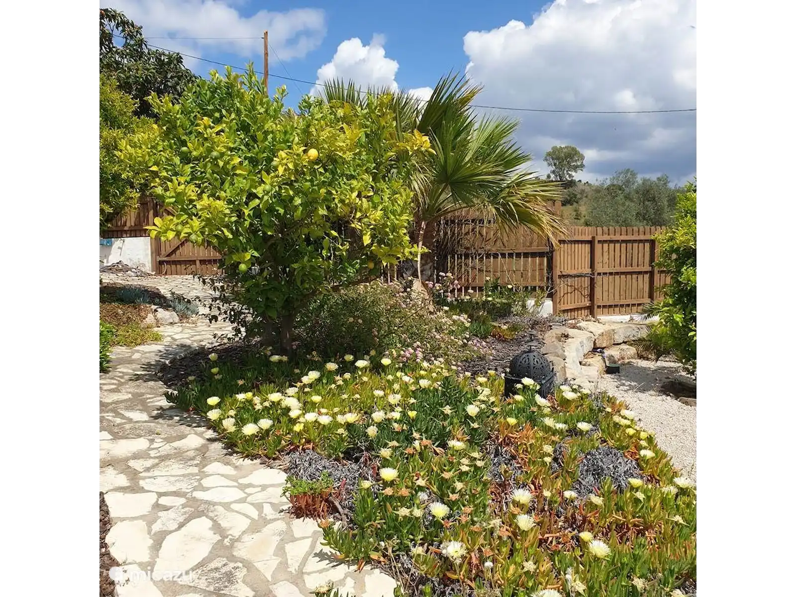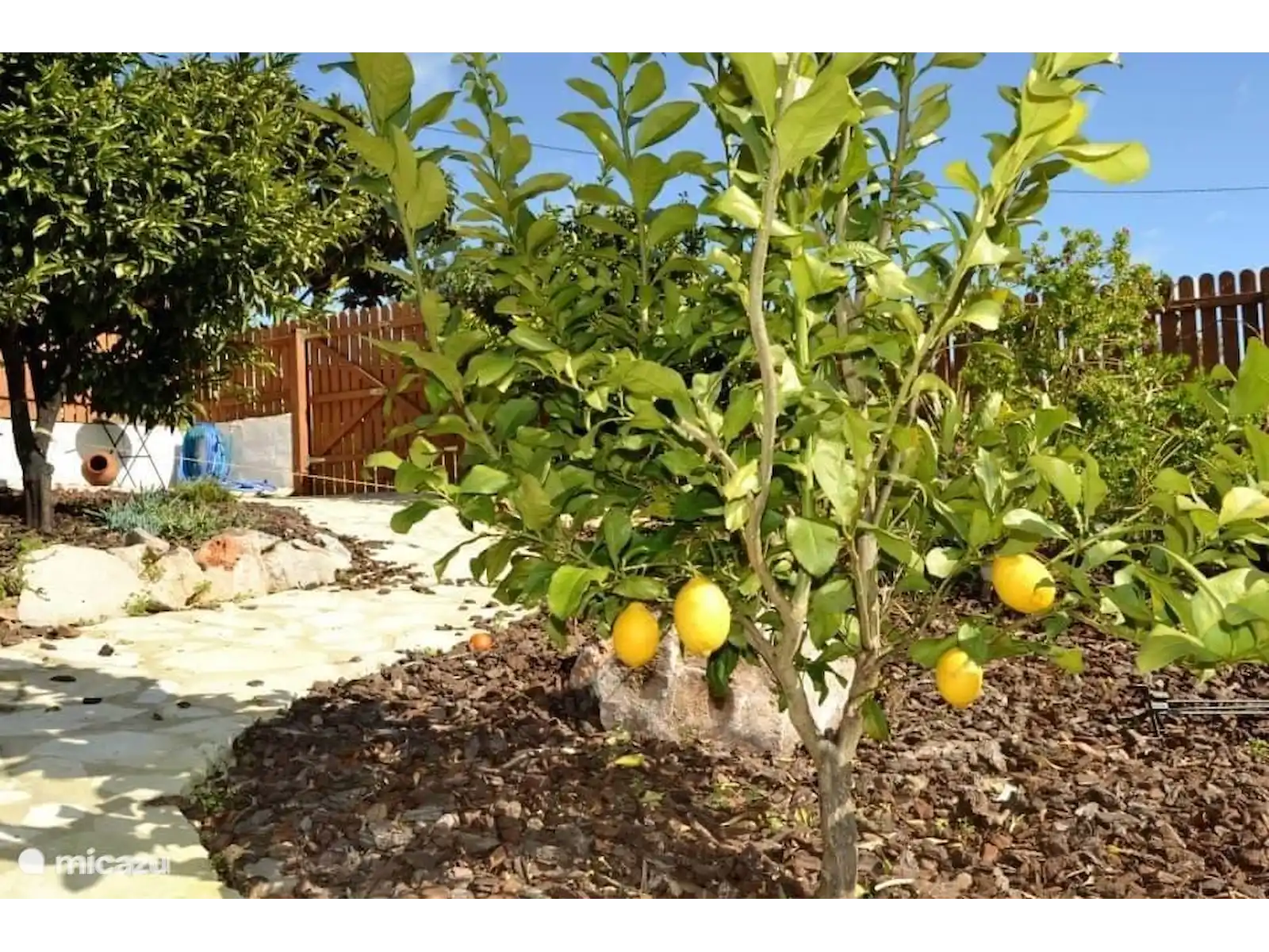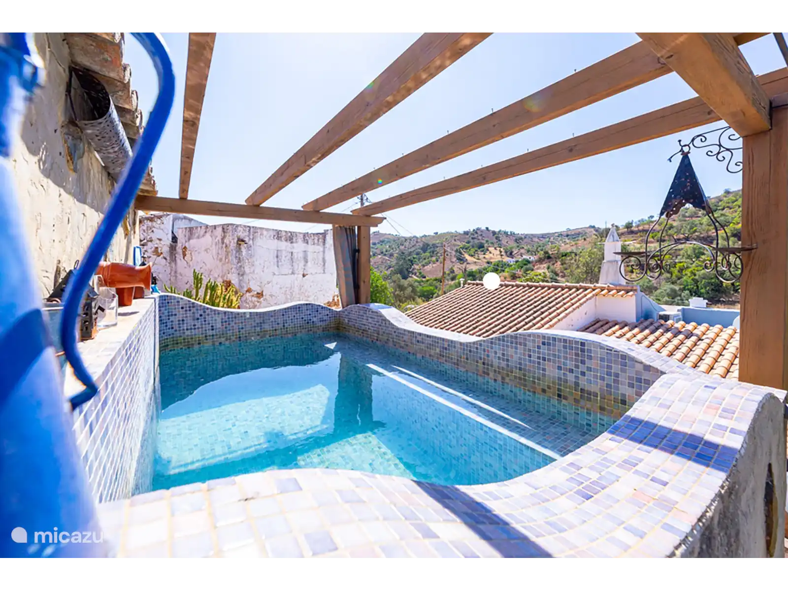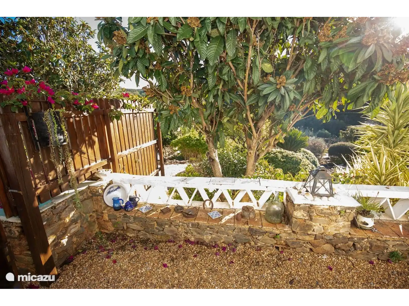 Enjoy modern comforts such as air conditioning, a non-frost fridge and a dishwasher, in beautifully decorated rooms. The open-plan living room includes a fully equipped kitchen and a bathroom with a rain shower. Outside, there's a private 6 sqm plunge pool and a beautifully landscaped garden, perfect for relaxation exclusively available to the guests. Dogs love it too! The patio terrace with a dining table overlooks a small river that borders the property. Guests are welcome to pick fresh oranges, grapes, and lemons from the garden.