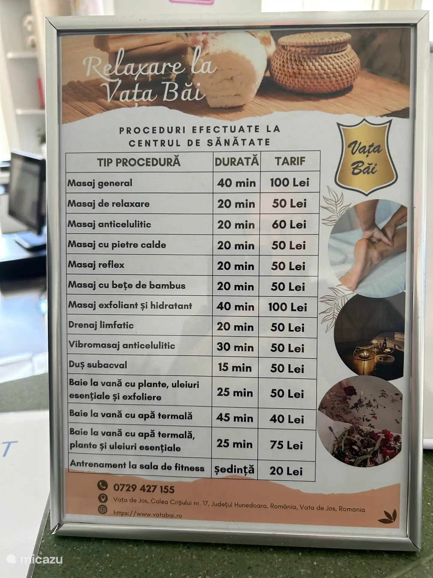 Nearby, in Vata de Jos, you will find a wellness centre with various herbal baths, massages and other body treatments.