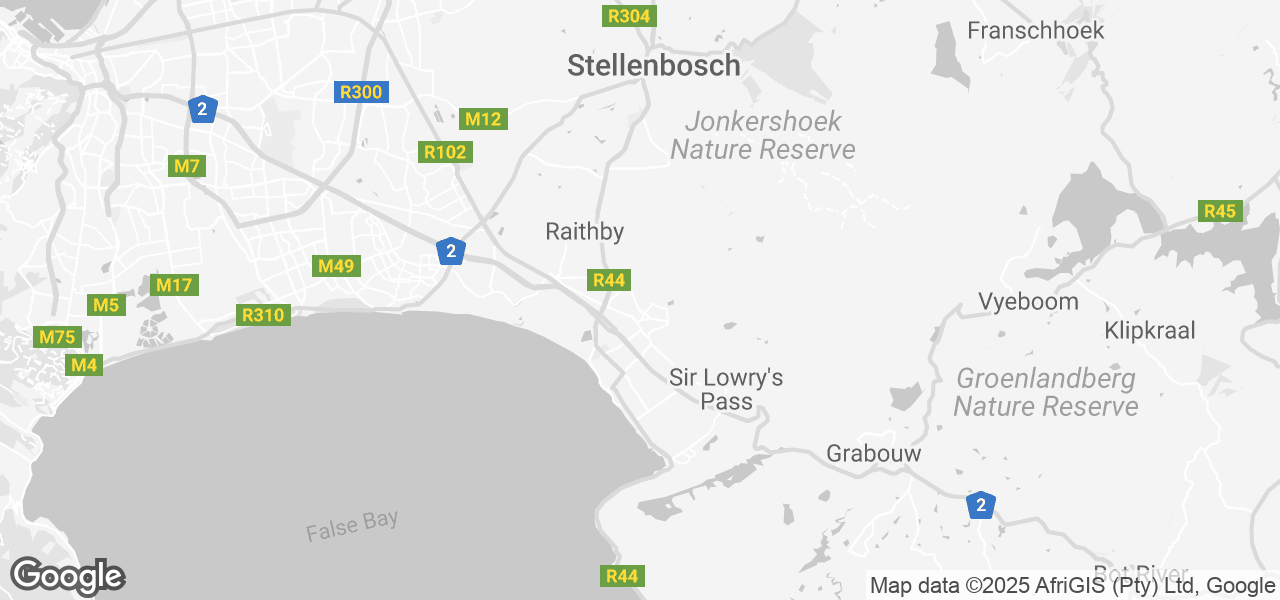 Bustling city of Cape Town just 45 km away and on the doorstep of the famous Stellenbosch wine route.