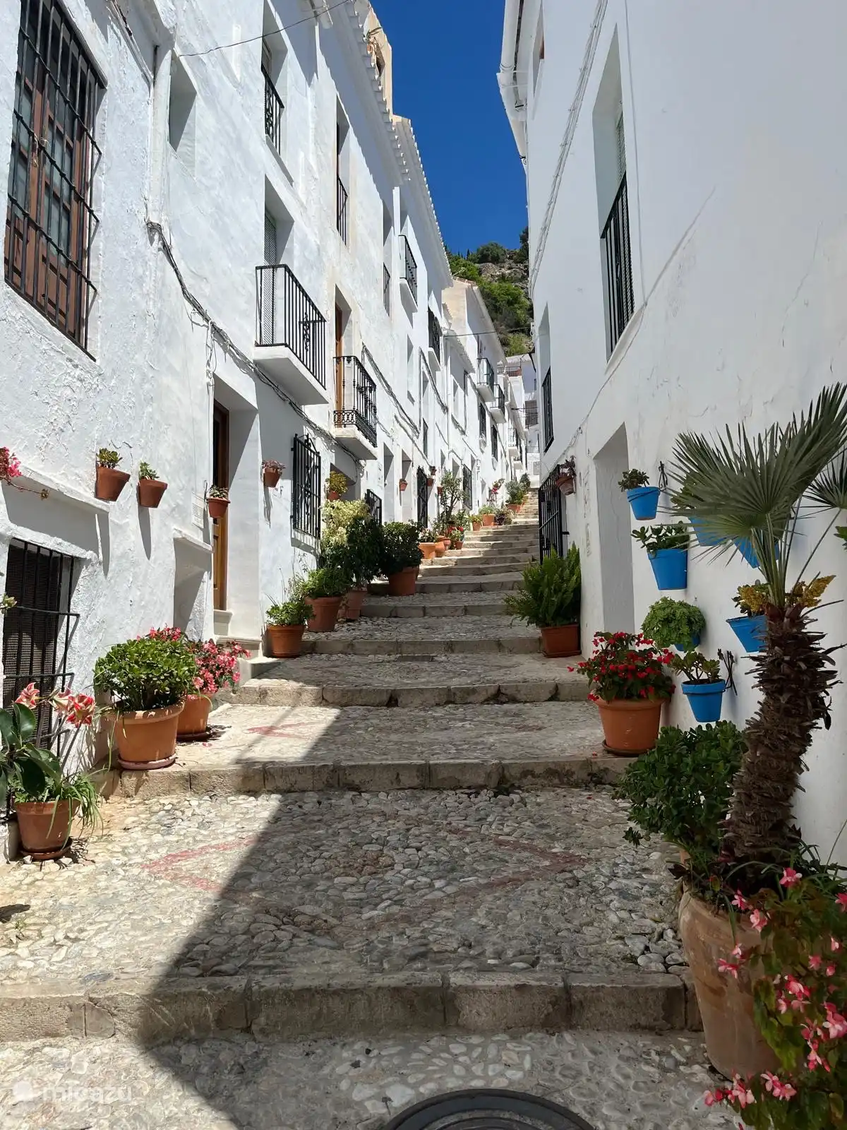 Casa en las Viñas is located in the countryside ('campo') near the lively, picturesque white mountain village of Almáchar, here you can sit down on a terrace for breakfast or tapas with a drink, both in the morning and in the evening there are plenty of restaurants and bars open, making the village feel very lively. There are several shops such as a number of neighborhood supermarkets, a pharmacy, a butcher, a fishmonger, a bakery, there is an ATM/bank and several kiosks where you can go for a drink and a snack on a square. In the village there is also a somewhat larger municipal swimming pool and there are Petanque courts. This region is known for the Moscatel grape, during a walk in our area you will see the endless grape fields, fruit plantations, rolling hills and rugged mountains. The region is good for a long walk, there are several routes indicated, from the apartment you can walk a number of them. Malaga city is a 40-minute drive away.