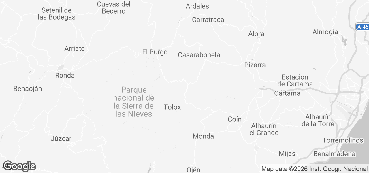 Malaga airport/beach and city is 50 km away west of Casa Eden. 50 km north of Marbella and 40 km from Ronda. The routes to the cities lead through beautiful nature reserves. In the Sierra de las Nieves you can walk beautifully. The Caminito del Rey is 45 minutes away and magical El Torcal is 90 minutes. In short; Very centrally located in peace, private, silence and beautiful nature.