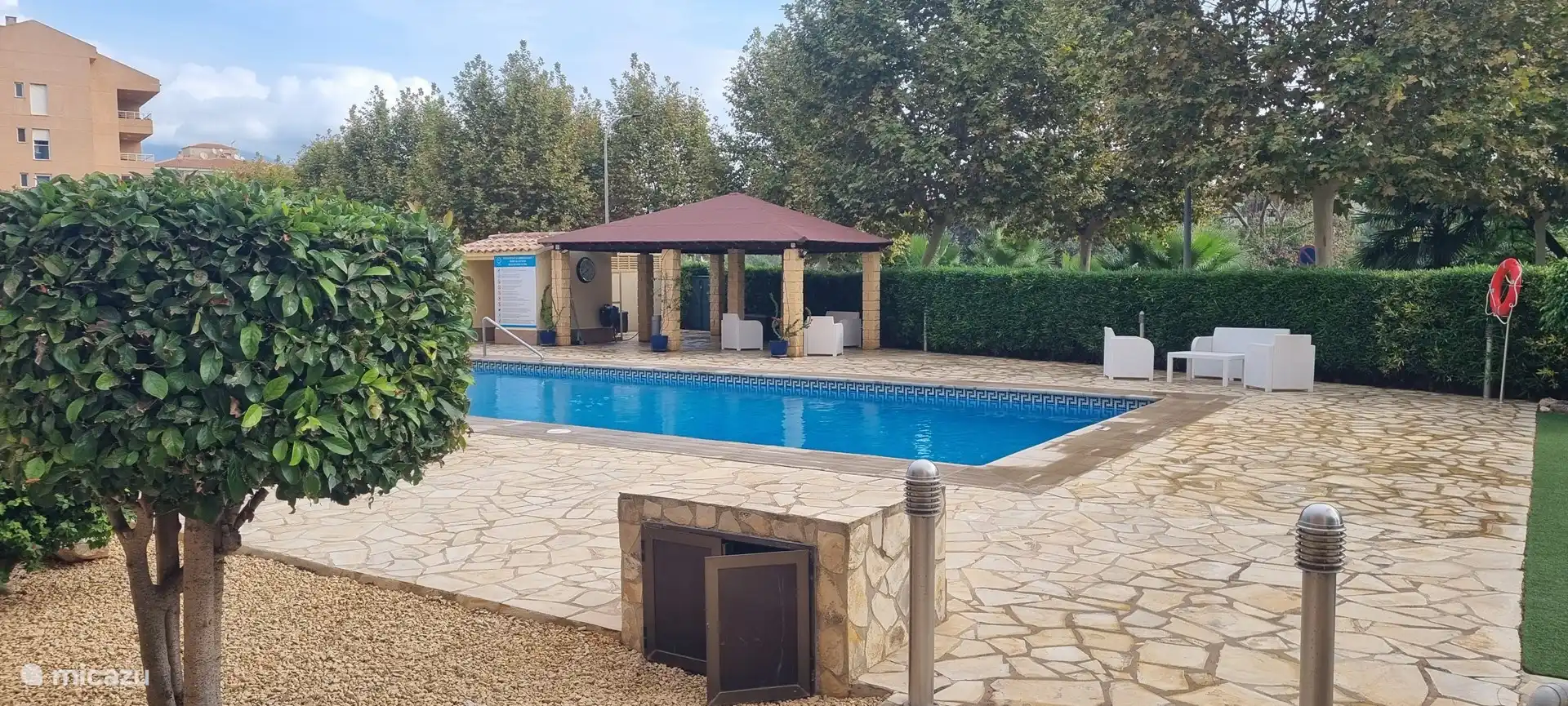 The small-scale apartment complex (25 apartments, 1 apartment of which can be rented for family or friends, if available) has a spacious beautiful tropical enclosed garden with a nice swimming pool surrounded by sunbeds and some seating areas. In this garden you can enjoy the sun from early in the morning until late in the evening. On the fourth floor there is a huge roof terrace where you can barbecue, bbq available. The roof terrace offers an incredible 365 degree view of the beautiful surroundings and where you can enjoy the spectacular sunrises and sunsets.
