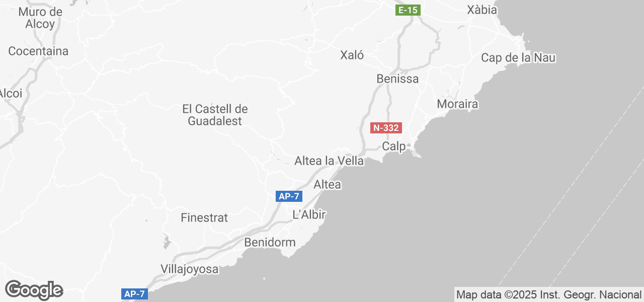 Other distances: Altea boulevard 6 km, La Olla (pebble beach and hiking trail) 4 km, Calpe (sandy beach) 13 km.