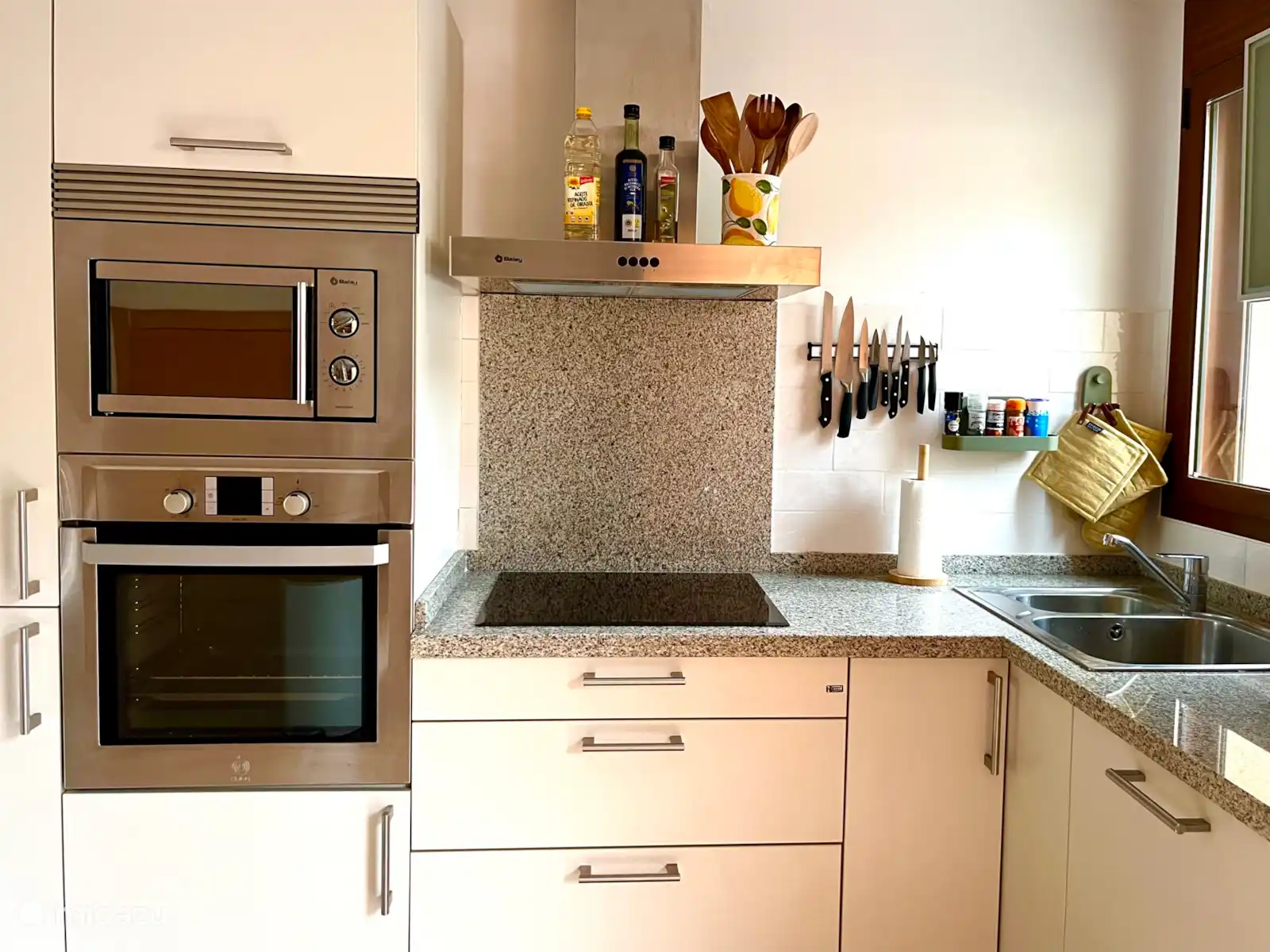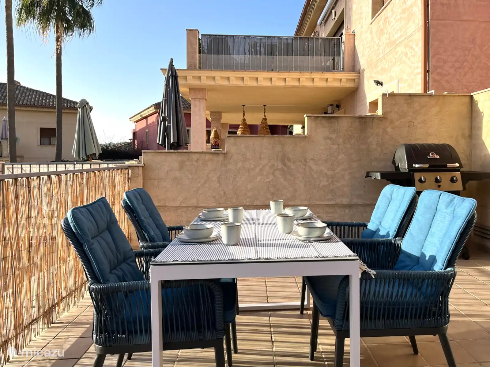 On the spacious roof terrace there is a comfortable lounge set, a dining table with four chairs, two lovely sunbeds and a gas barbecue. Here you can enjoy the more than 300 sunny days a year all day long. Thanks to the subtropical climate, it is a good place to stay all year round.