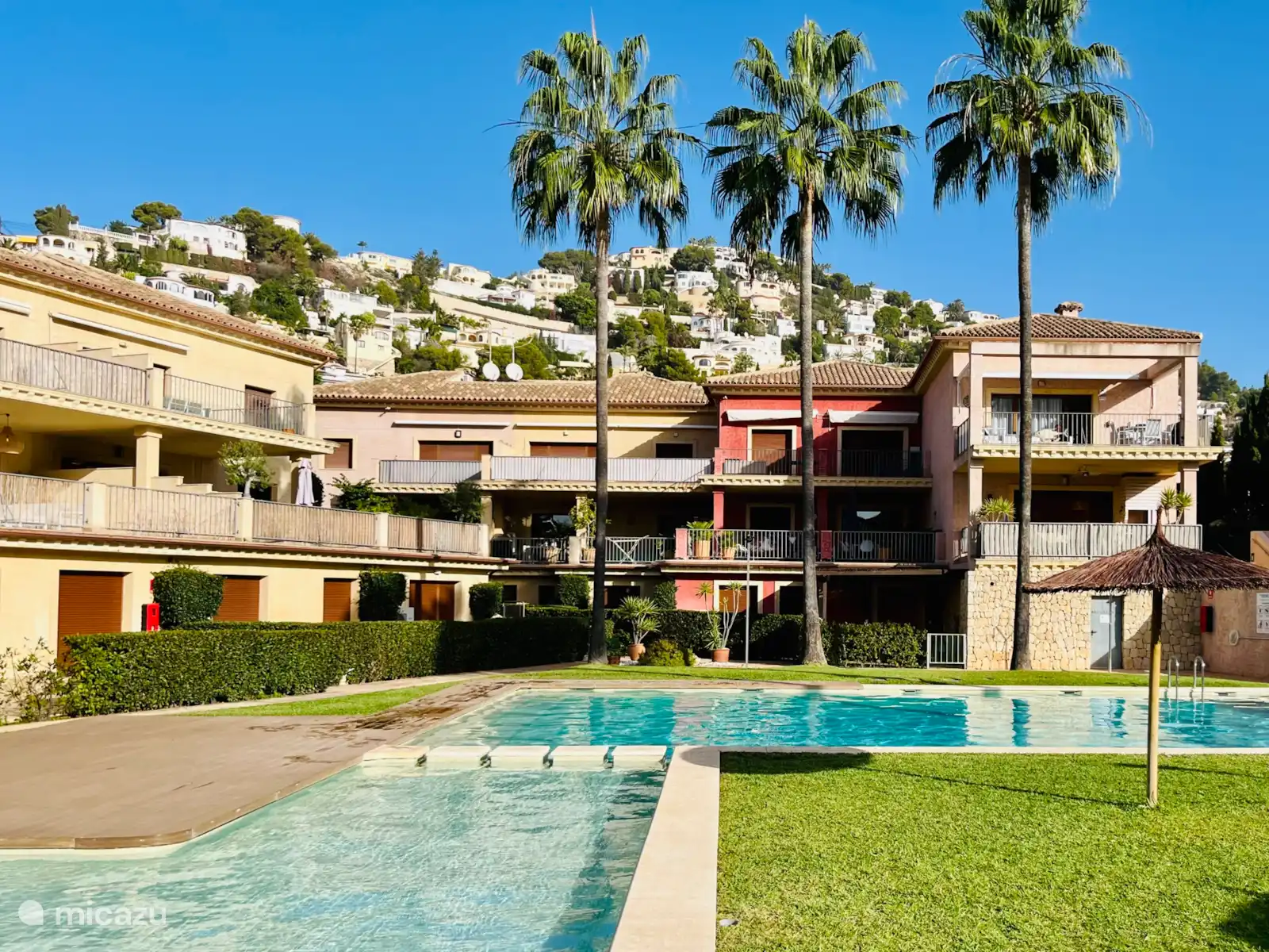 La Casa Feliz is a ground floor apartment with the entrance and the adjacent private parking space on the ground floor. Behind the front door, the apartment with roof terrace is on the 1st floor. This combines the advantages of easy accessibility - also for the disabled - with the privacy and the pleasant view of the garden and swimming pool of the 1st floor.