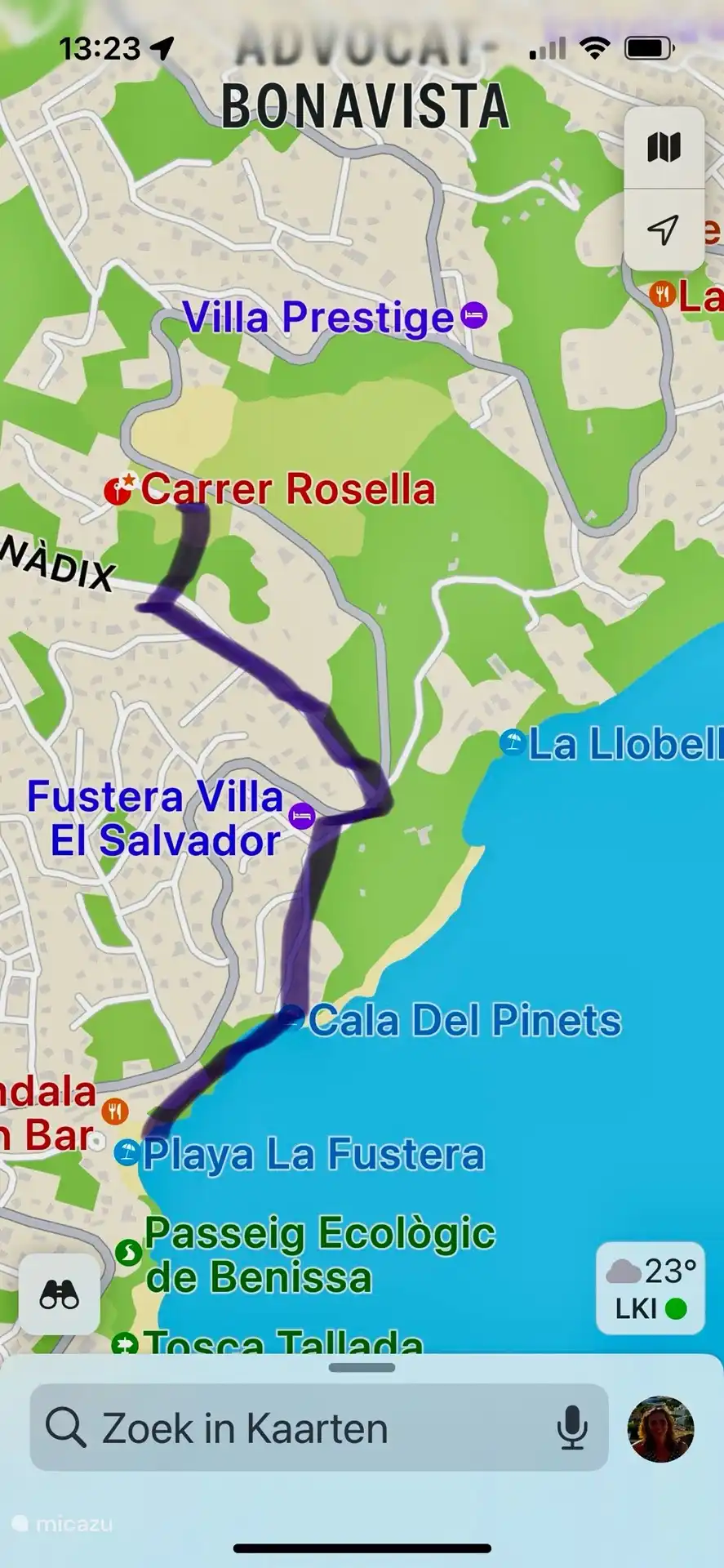A small road from the coastal road leads to a Cul de Sac with 12 houses. There is room for two cars in the driveway. A stone staircase leads you upstairs to the large terrace where 6 sunbeds are available around the pool.