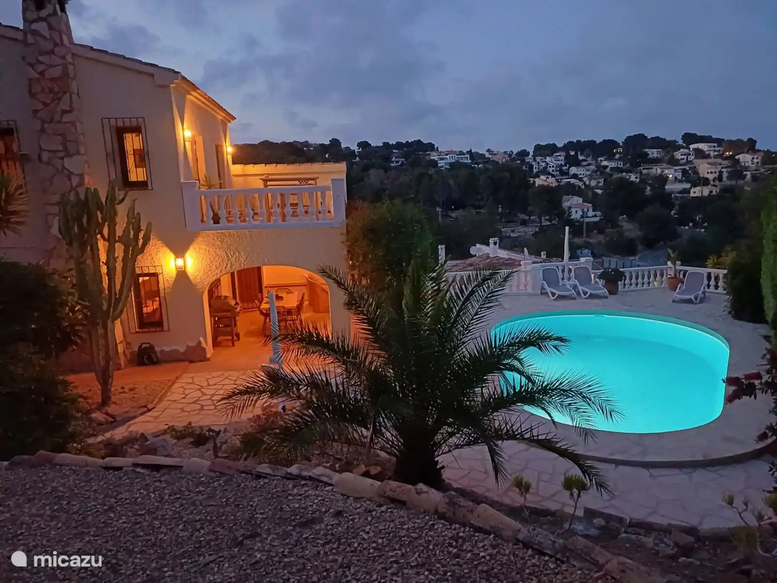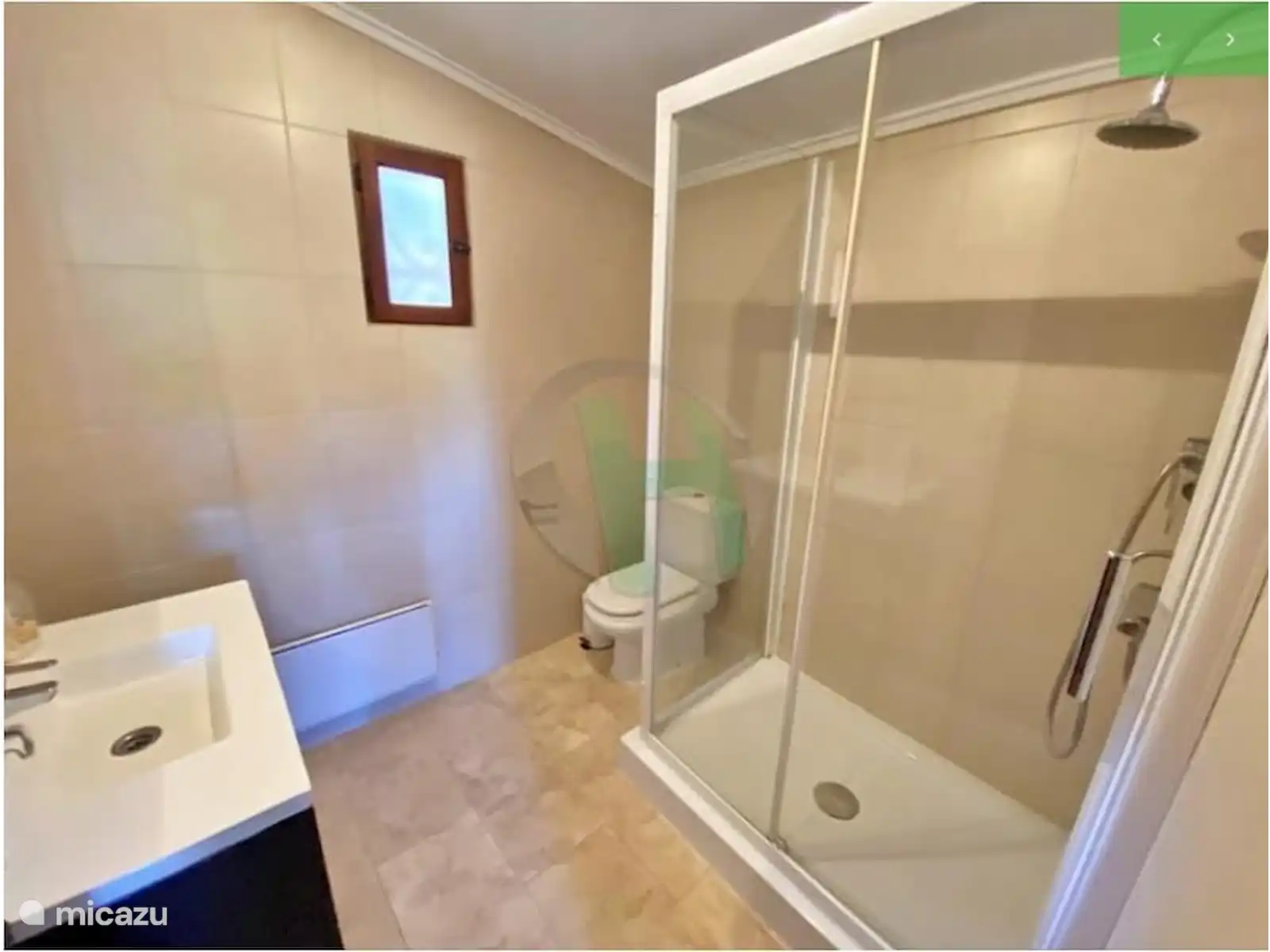 Surrounded by a Mediterranean garden, there are plenty of places to relax. From the pool terrace you enter the spacious covered Naya with enough space for six people to dine. The house is entered from here and leads directly into a very spacious and attractive dining room with wooden beams and a fireplace with wood burner. A few steps lead to the fully fitted kitchen with many cupboards and drawers as well as an electric oven, gas hob, Nespresso machine, dishwasher and fridge / freezer.