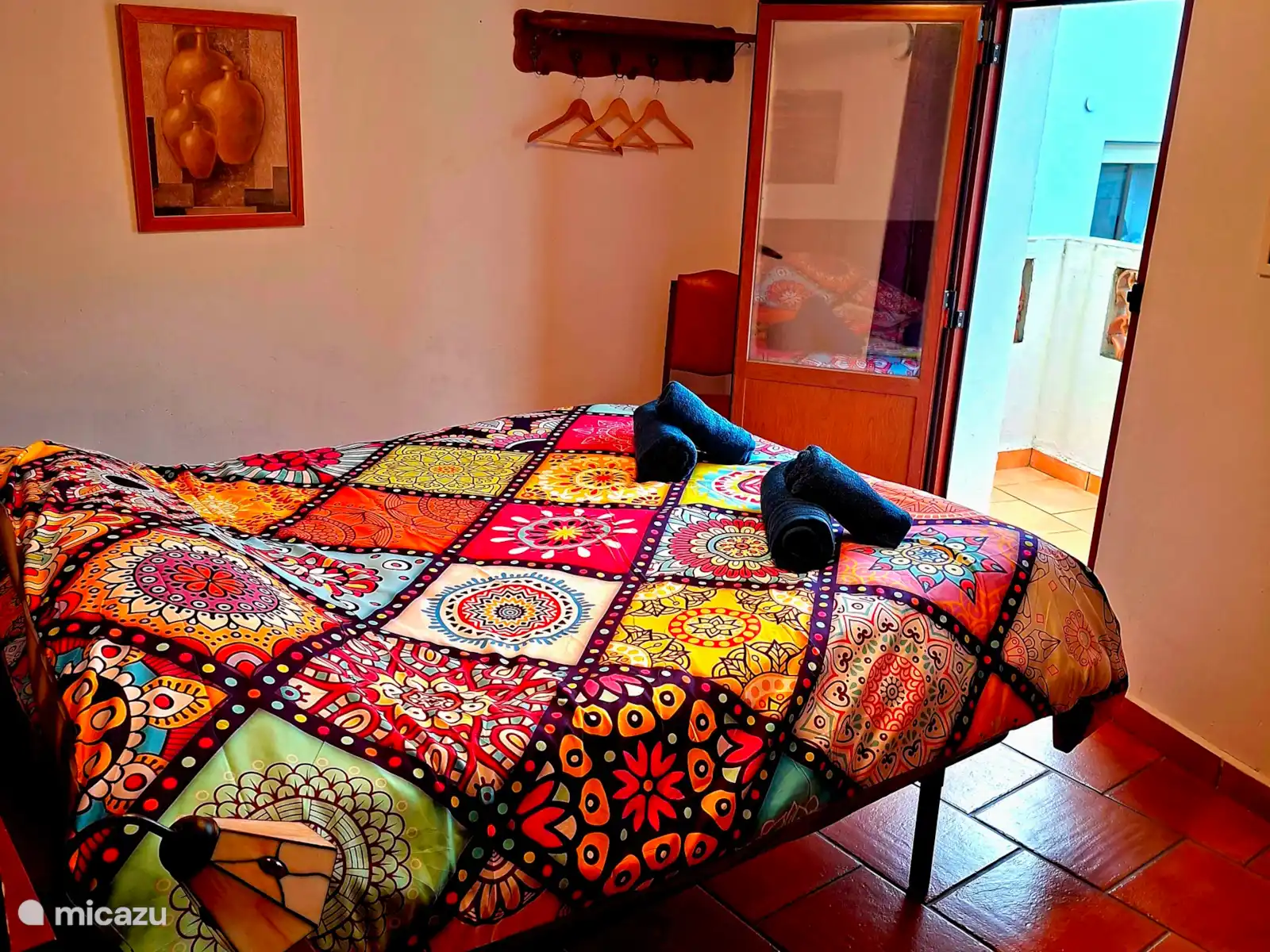 On the third floor is the second bedroom and has a double bed with balcony with a beautiful view over the mountains. With adjacent, a second room that offers plenty of space with a comfortable double (sleeping) sofa. With a washing machine, washing facilities, second fridge, coffee maker and crockery