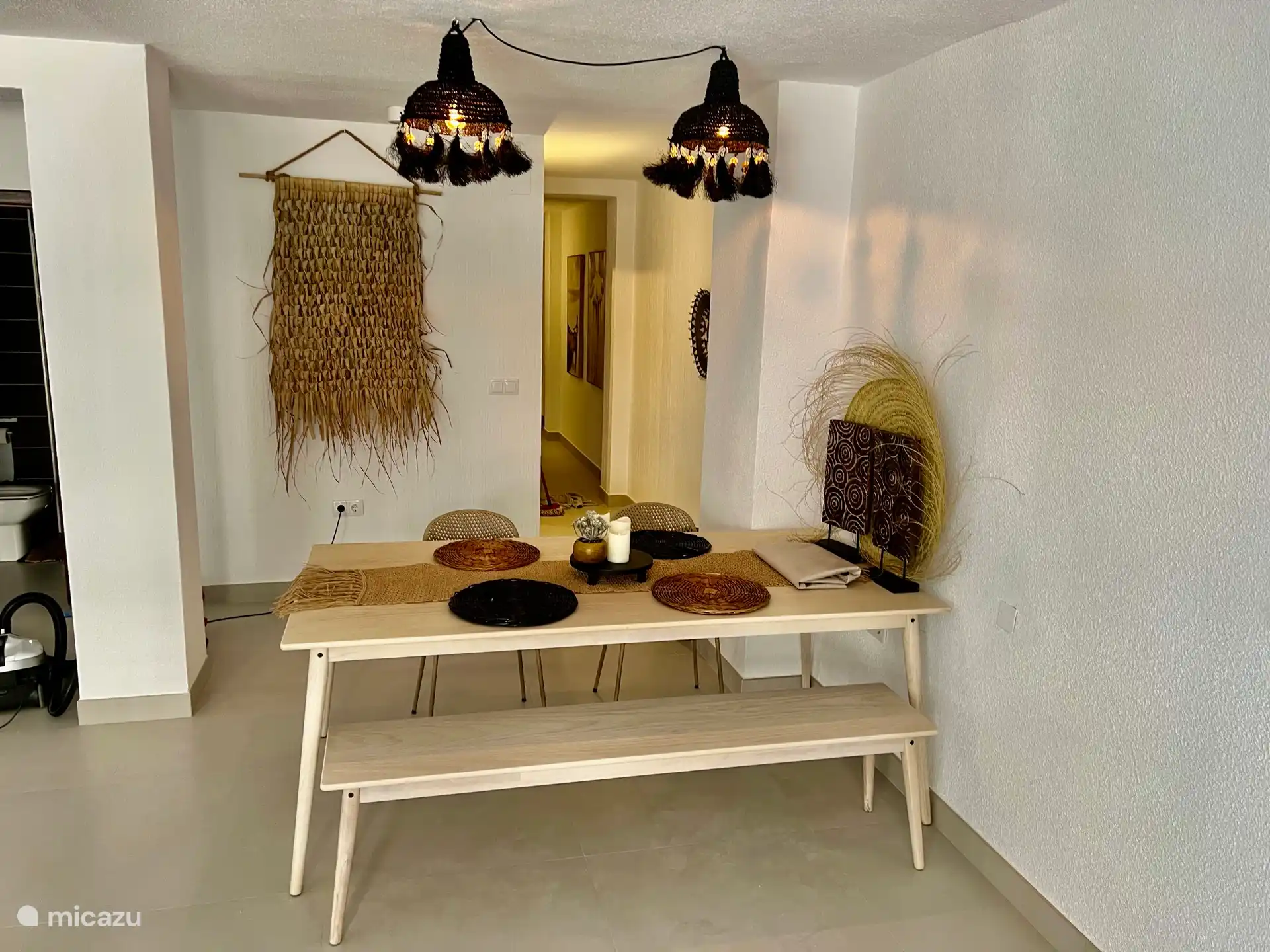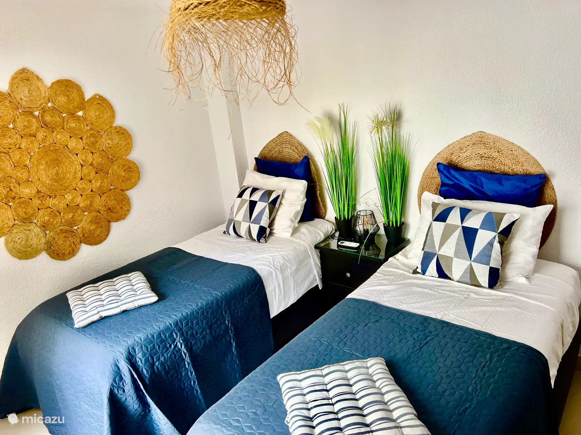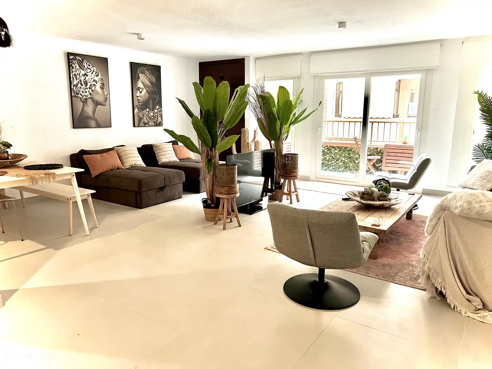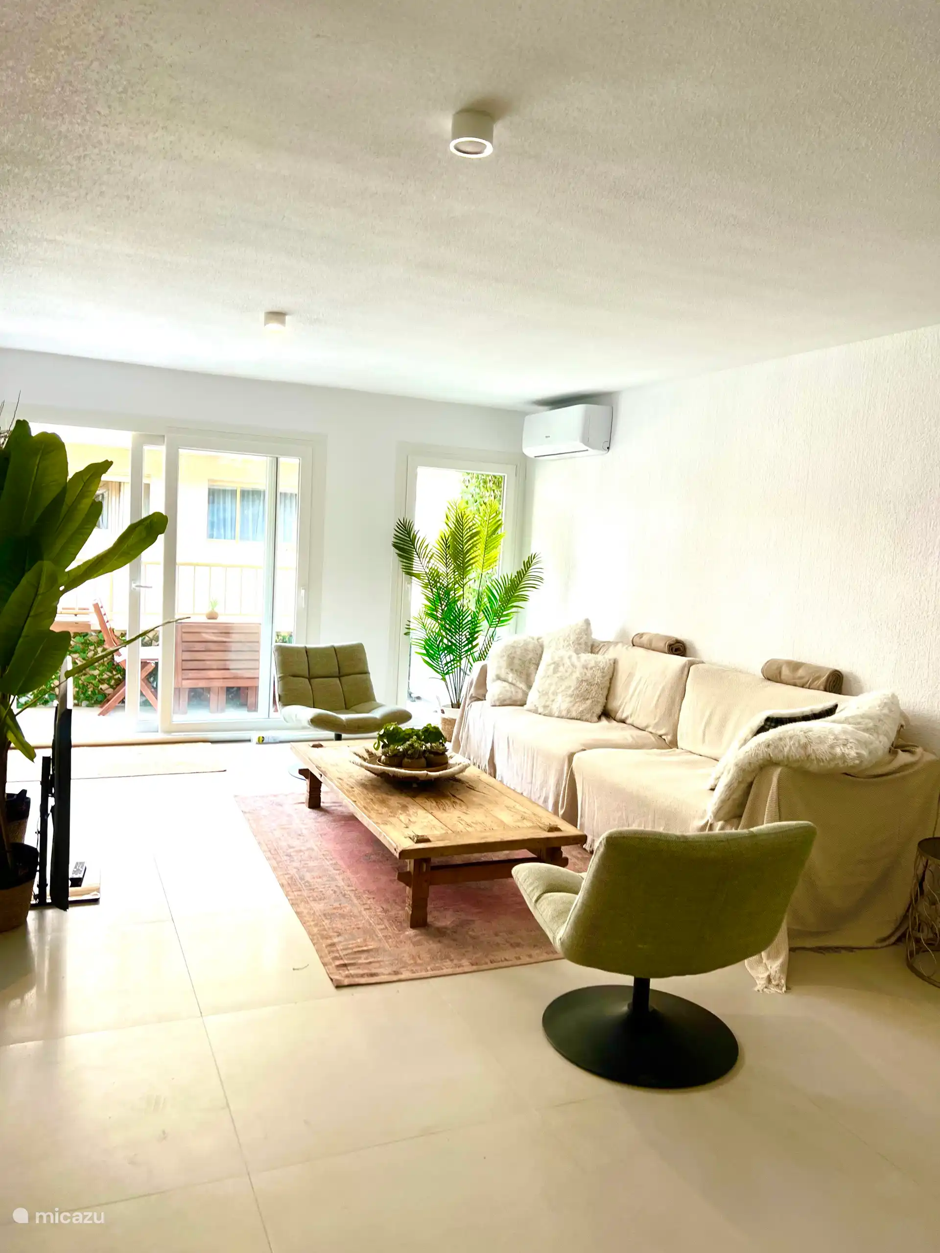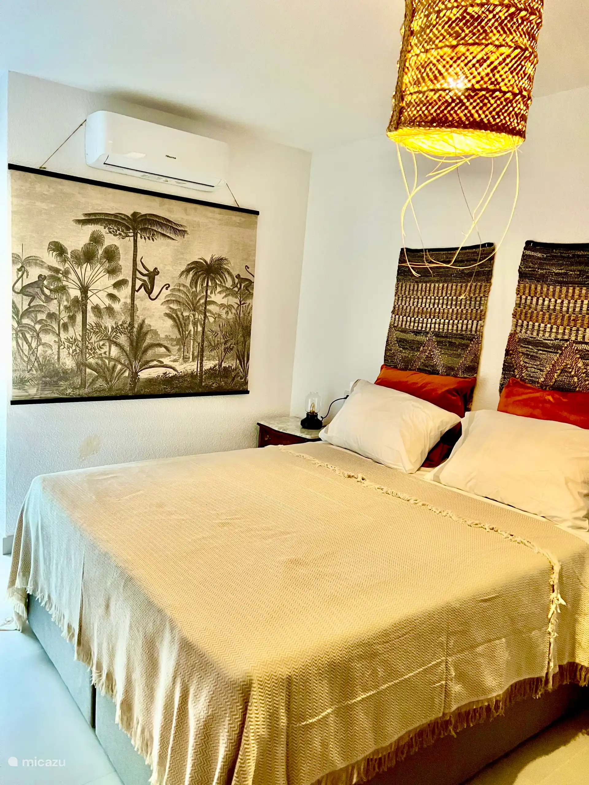 You have access to a recently renovated very large nice ibiza style villa that is equipped with everything that makes holidays so much fun: 5 comfortable bedrooms divided into no less than 3 apartments in 1 villa and all have their own living room, private bathroom and private kitchen. Around the villa lots of space in the garden which is equipped with sun terraces, Lovely spacious heated swimming pool with sun loungers and umbrellas and a real outdoor kitchen. And an outdoor bathroom and a veranda with a nice long dining table for 10 people.