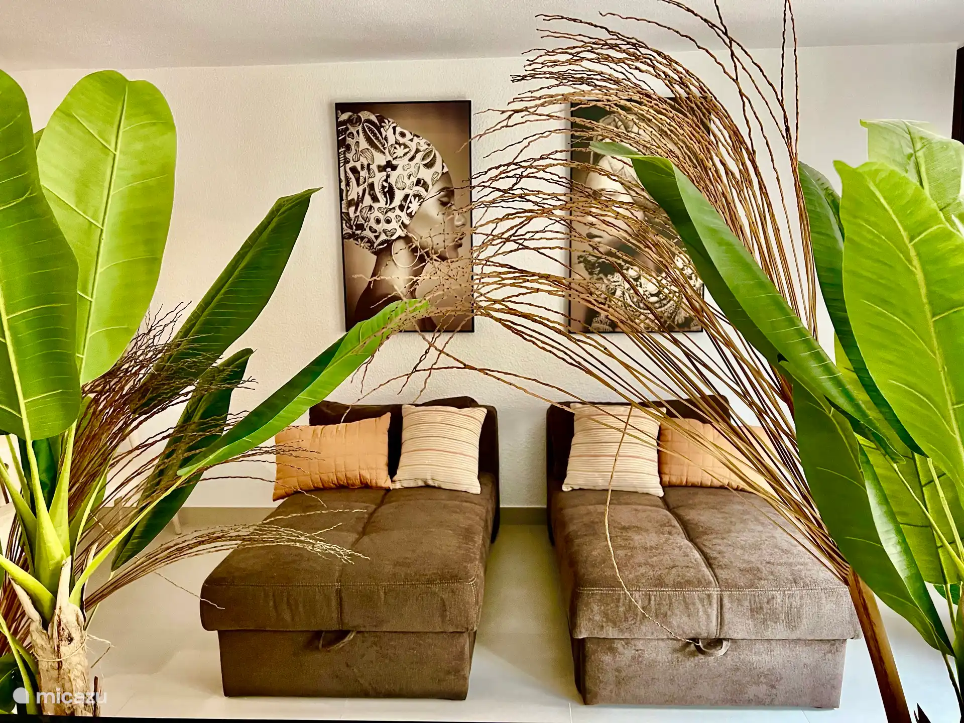 App 2 medium size, consisting of living room, kitchen, bathroom, 2 bedrooms. Nice front room