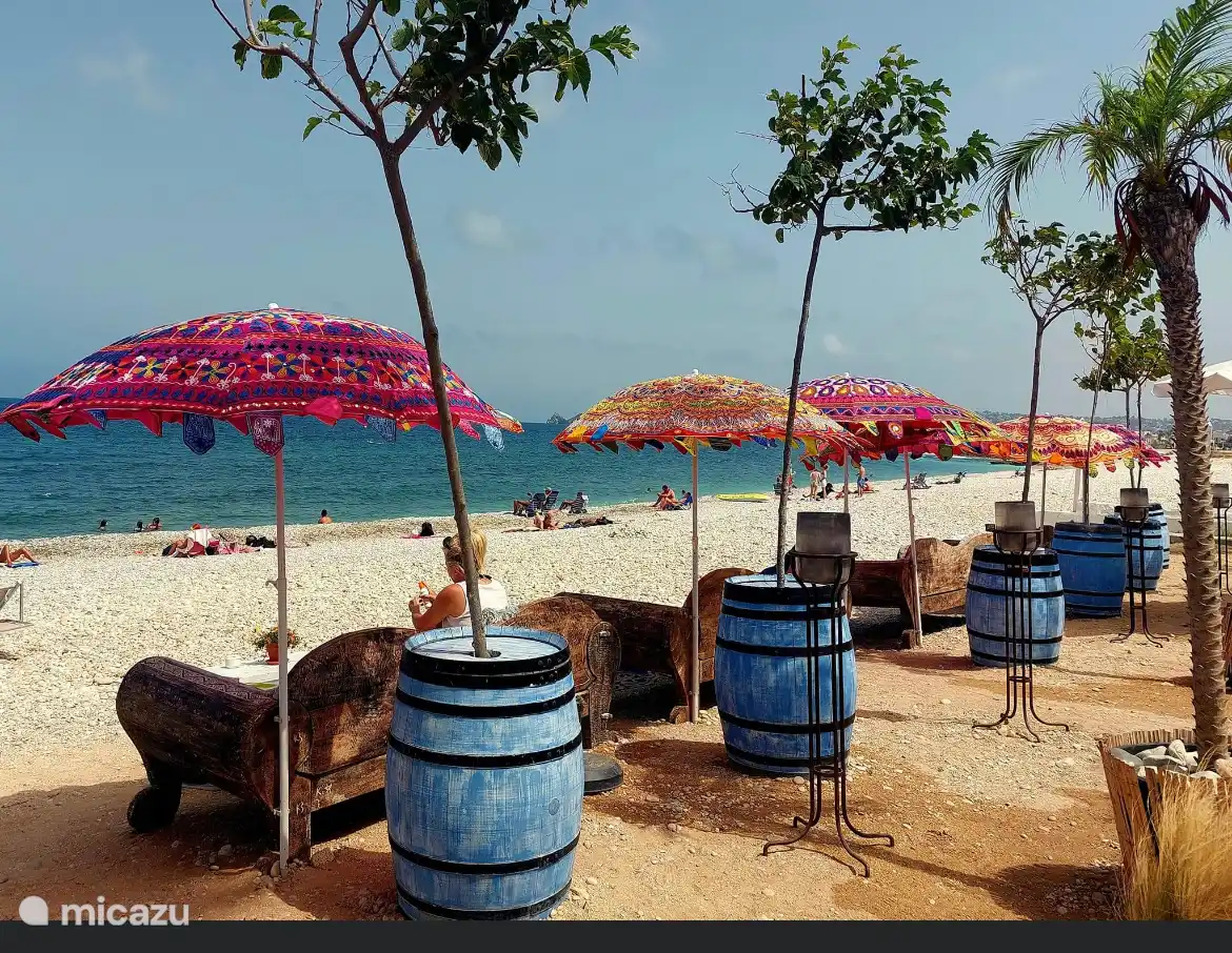 The villa is located due south, in a peaceful residential area; With a magnificent 180 degree view of the valley and the mountains of the Sierra Bernia, it has a very pleasant garden of 20 ares with fruit trees. The outdoor areas are perfectly set up for relaxation: Several covered outdoor terraces, magnificent swimming pool with outdoor shower, petanque court, table tennis. On the pool side, the 'naya' terrace has a lounge area, dining room and a fully equipped kitchen (a large oven (120cm), fridge and dishwasher, bar). There is also a barbecue area (gas).