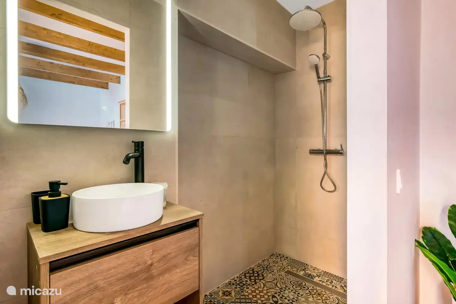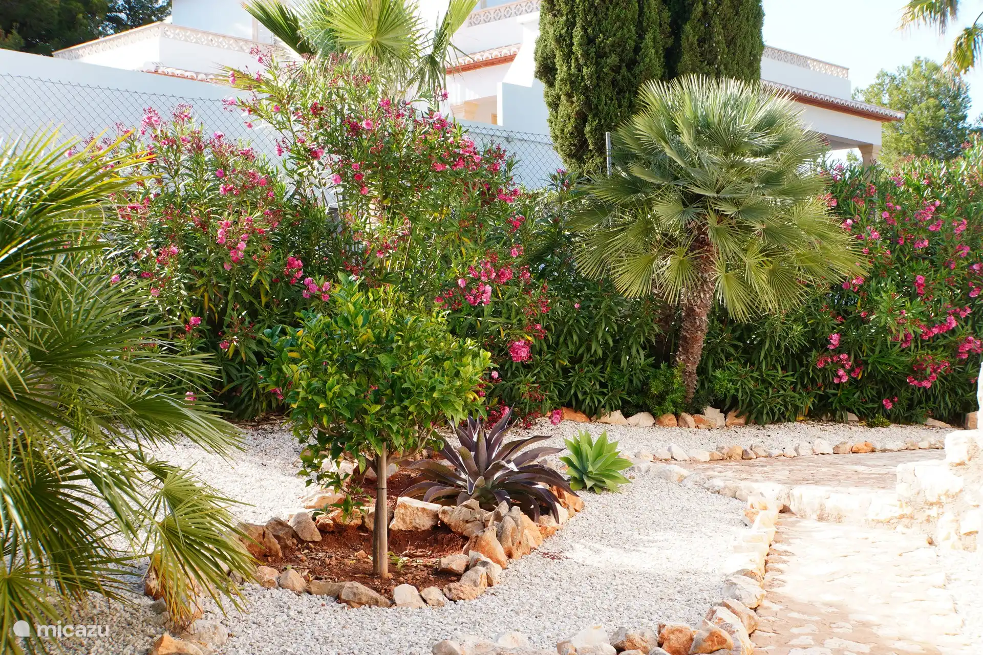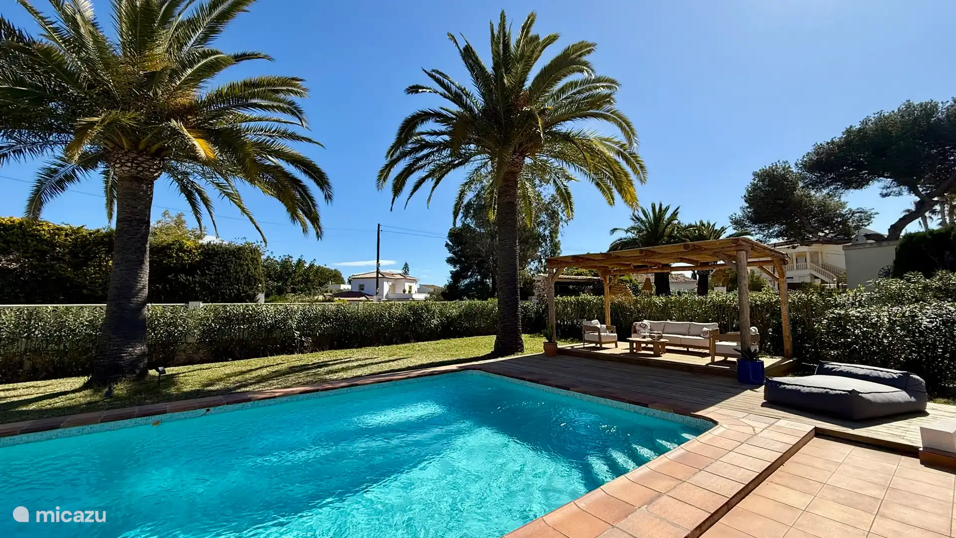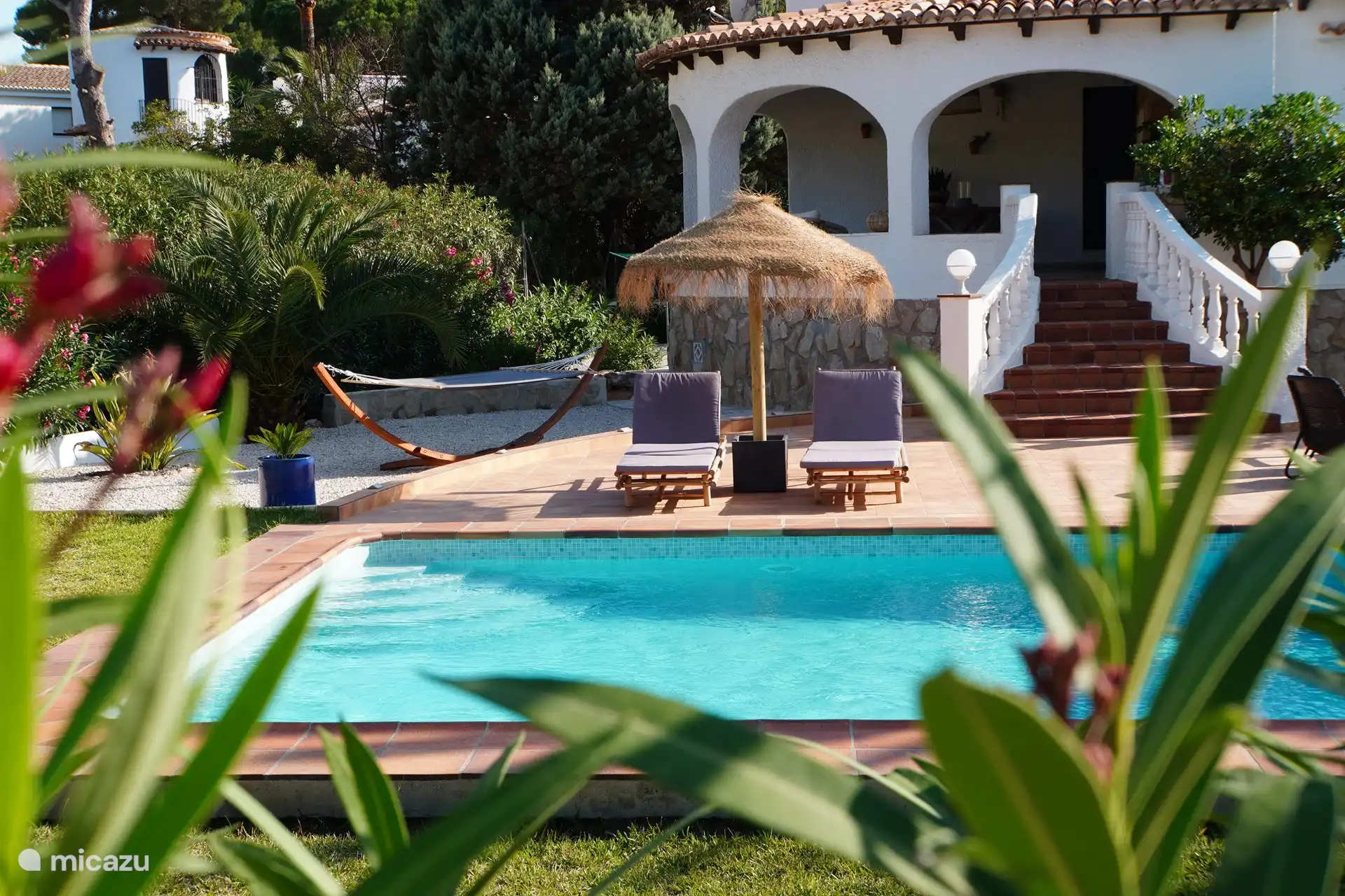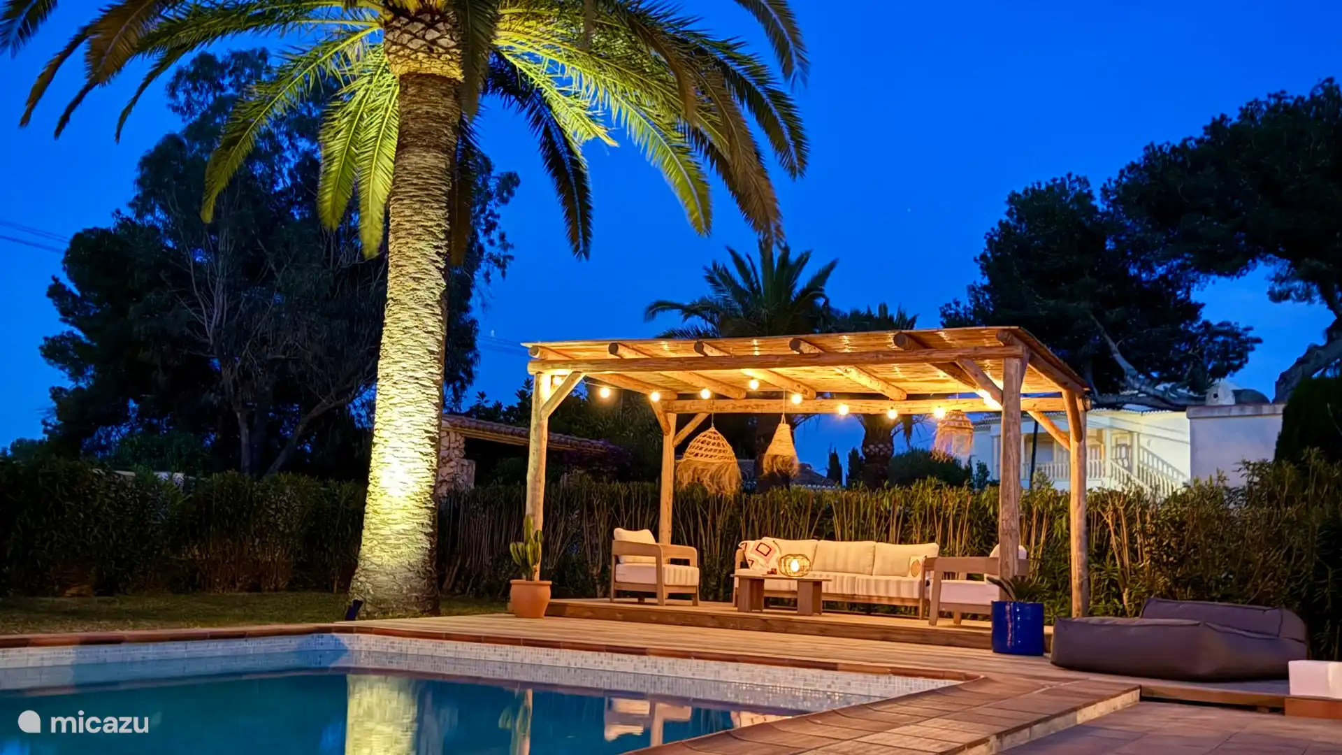 From the outdoor living room you look out over the beautiful Mediterranean garden (1000 m2!) with a large terrace, a terrace with thatched roof and lovely lounge sofas, and a spacious, completely renovated and illuminated swimming pool (10x5m). Around the pool you will find bamboo sunbeds with lovely cushions and thatched umbrellas, an outdoor shower, BBQ and hammock.