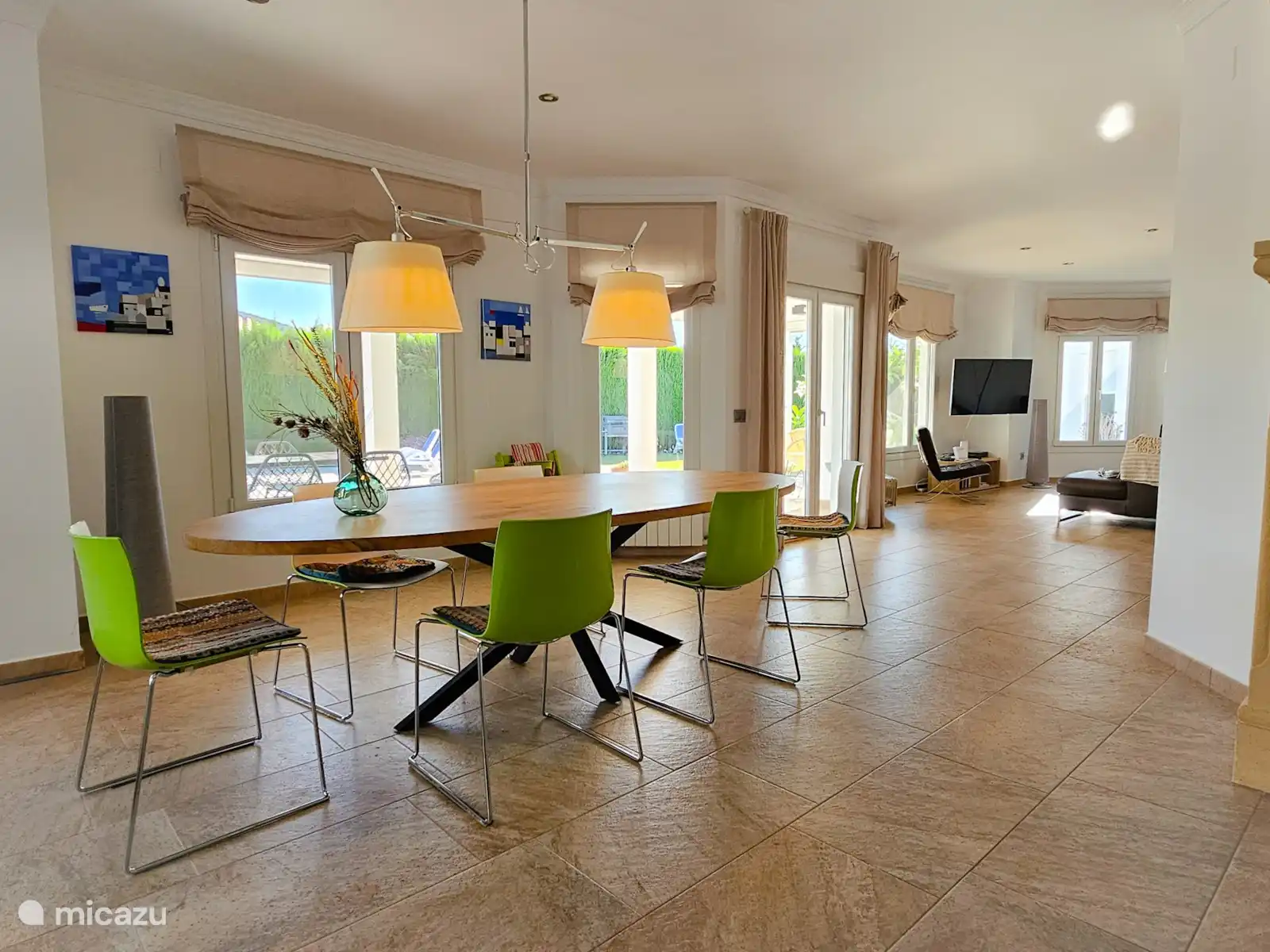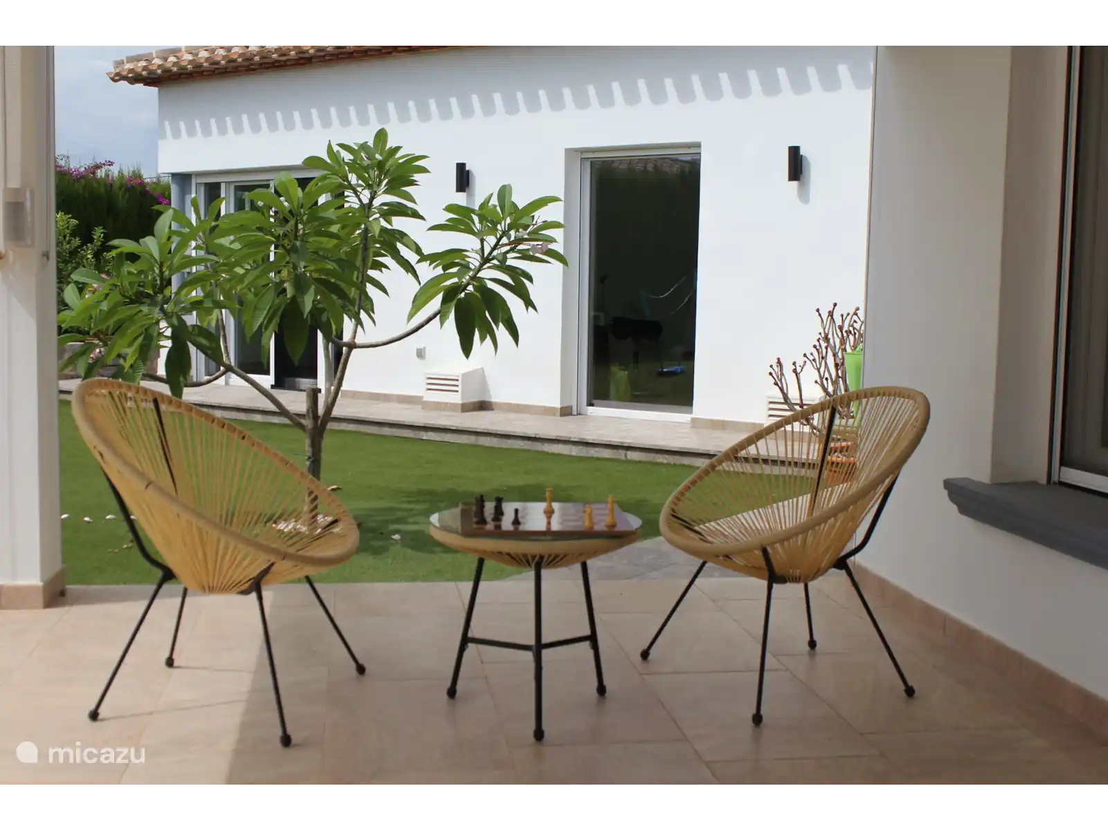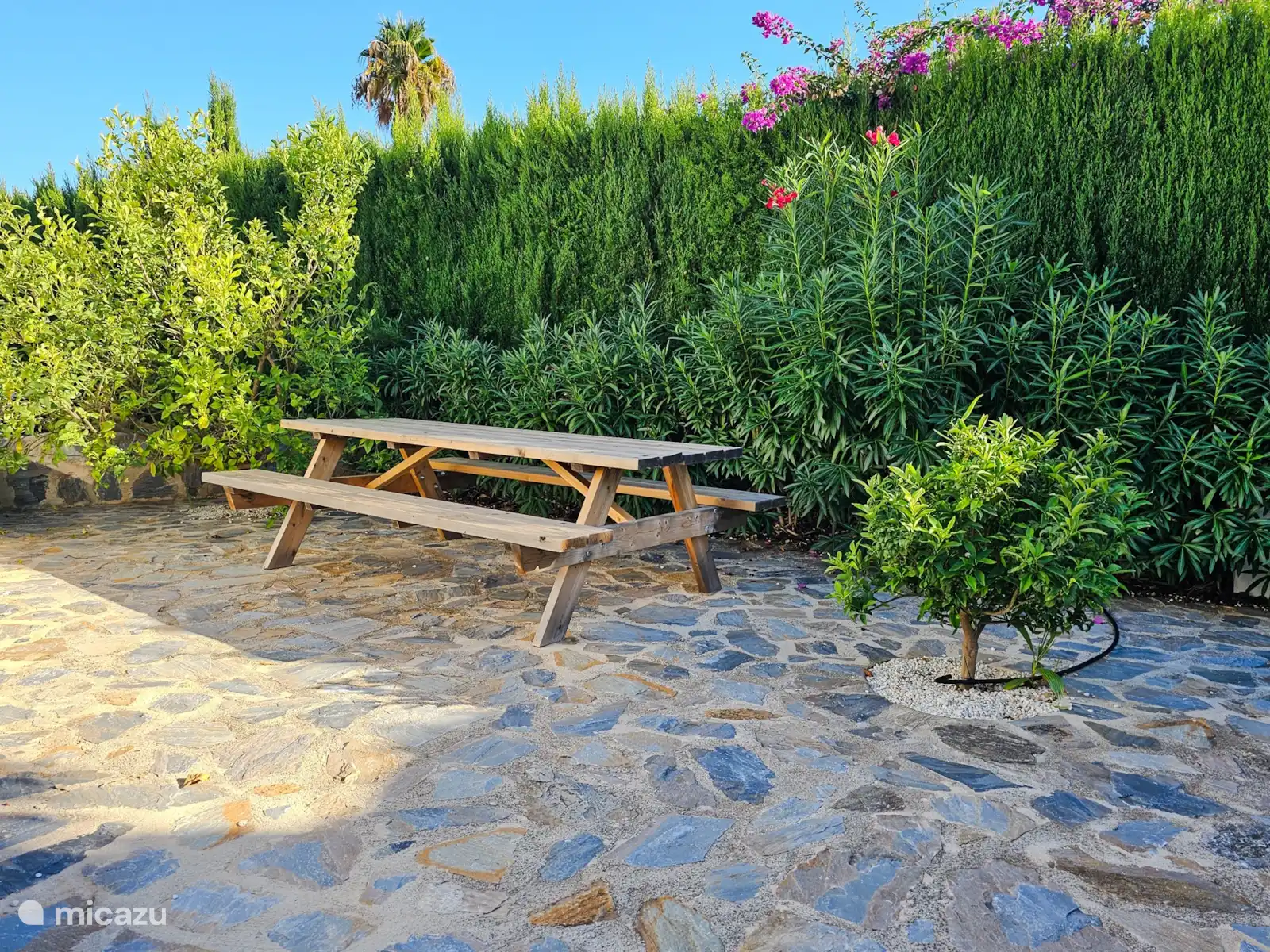 It is lovely outside. In the well-fenced garden, various places have been created to enjoy the sun and shade. Of course, you can also barbecue and eat outside. The naya (roof of the terrace) can be closed on all sides with vertical blinds. The garden is maintained by an experienced gardener from Jávea and has special trees, flowers and plants, such as papaya, avocado, orange, lime, banana and olives.