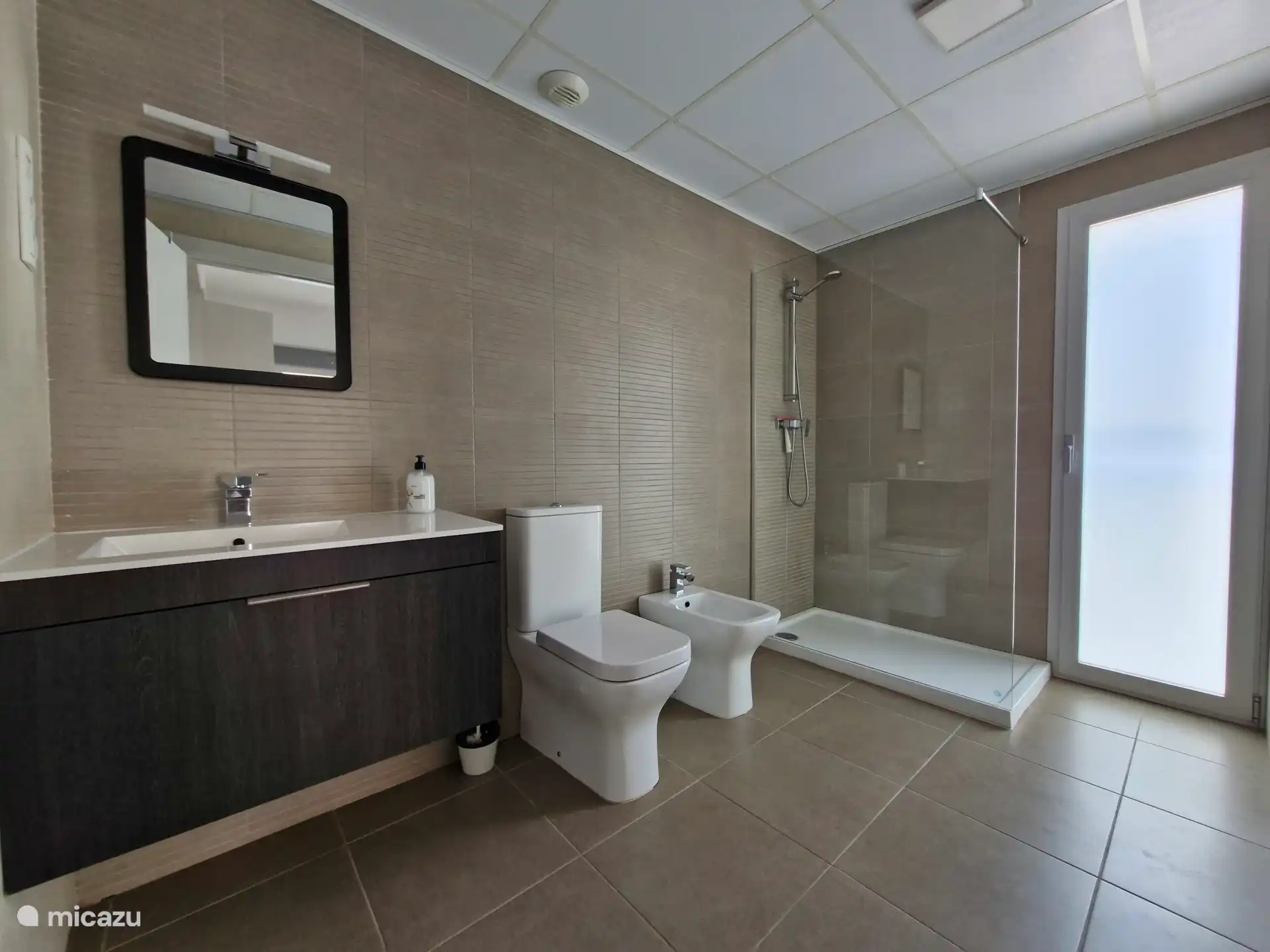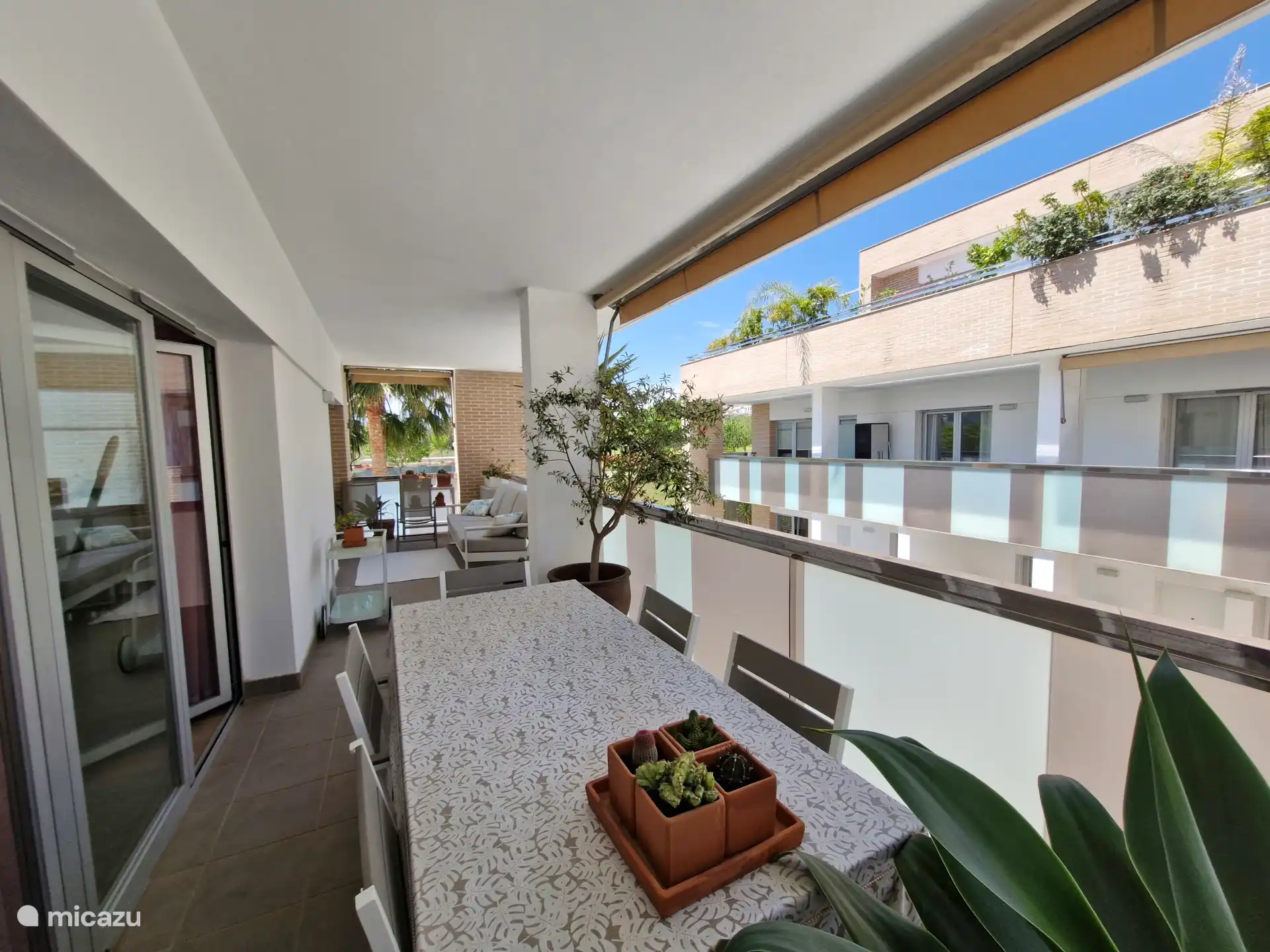 It is a recent apartment (2018) that is very centrally located, close to the sea, village and pebble and sandy beaches with a view of the Montgó. It is fully equipped. It has two bathrooms, two bedrooms, central air conditioning, a large terrace of more than 20 square meters, fully shaded (not insignificant in summer!). There is a large shared outdoor swimming pool of 15m * 8m and an underground parking space.