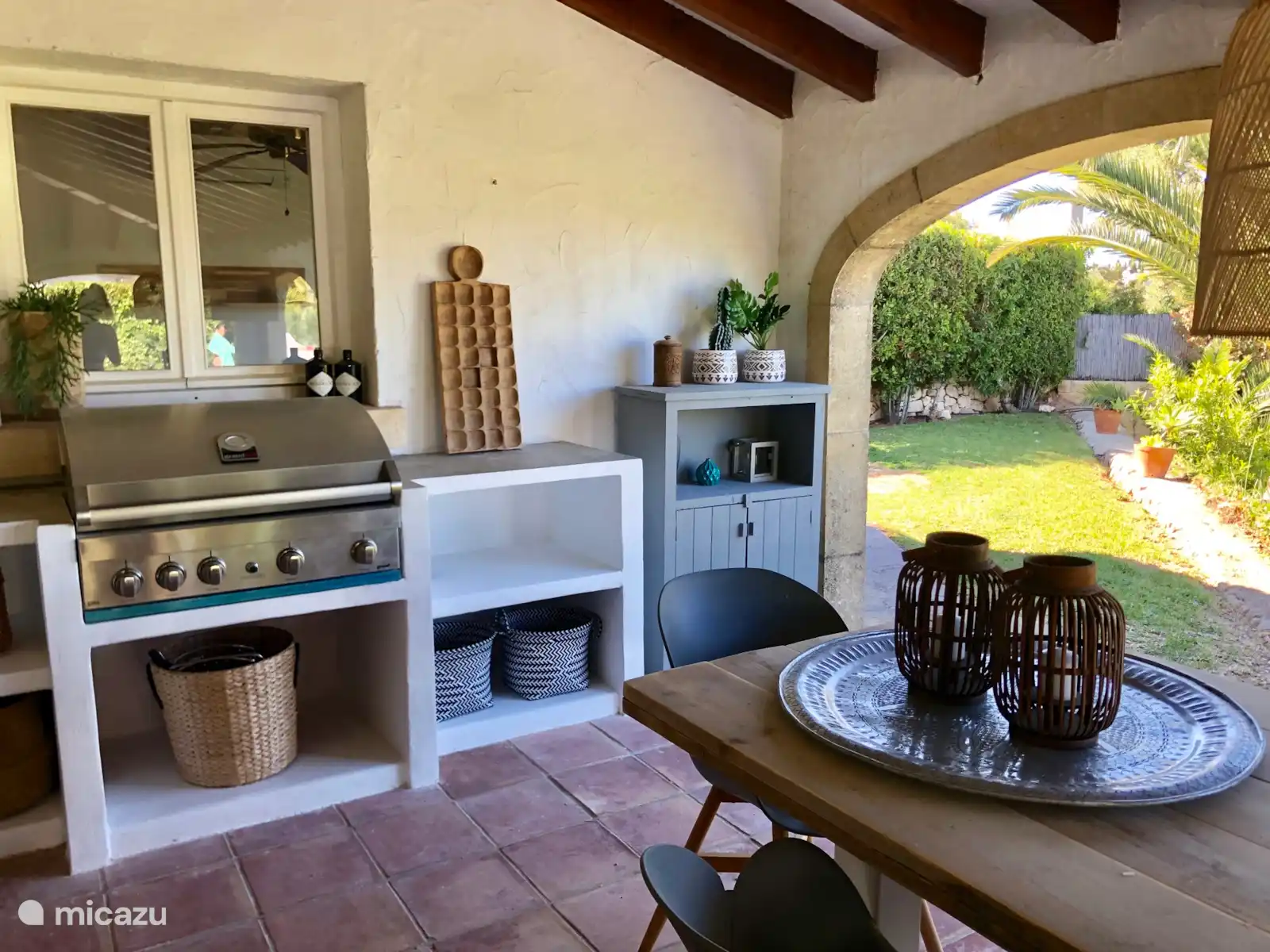 Nice holiday home in the popular town of Javea, with nice garden, beautiful view, all comforts, air conditioning in all rooms, nicely decorated, large swimming pool, beautiful naja, dining table for 10 people, outdoor kitchen (with large barbecue) and indoor kitchen, private parking, plot approx. 1000 m2 etc.