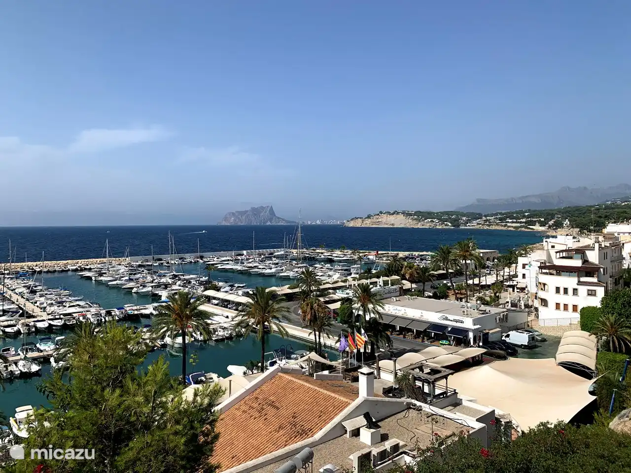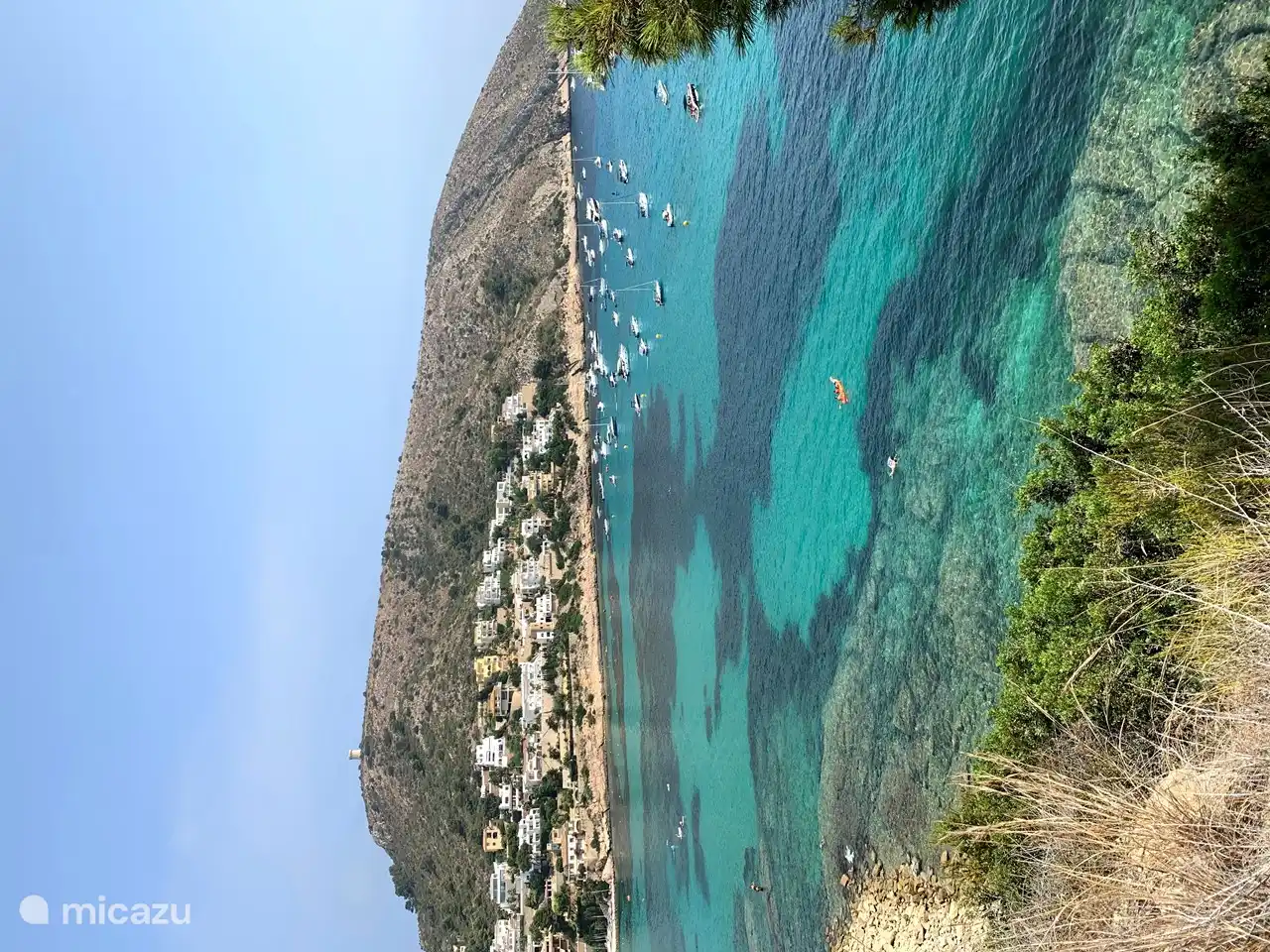 The open view over the azure blue bay of El Portet and Moraira with marina, extends from Calpe to the hilly hinterland.