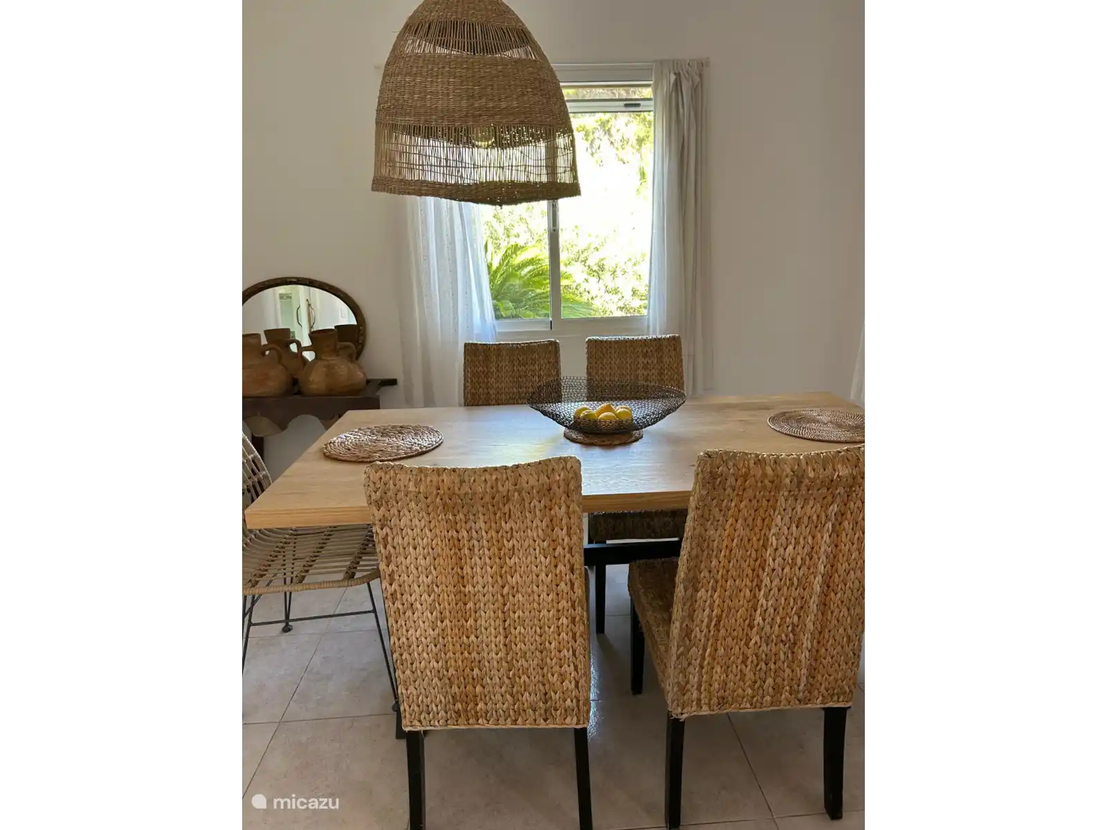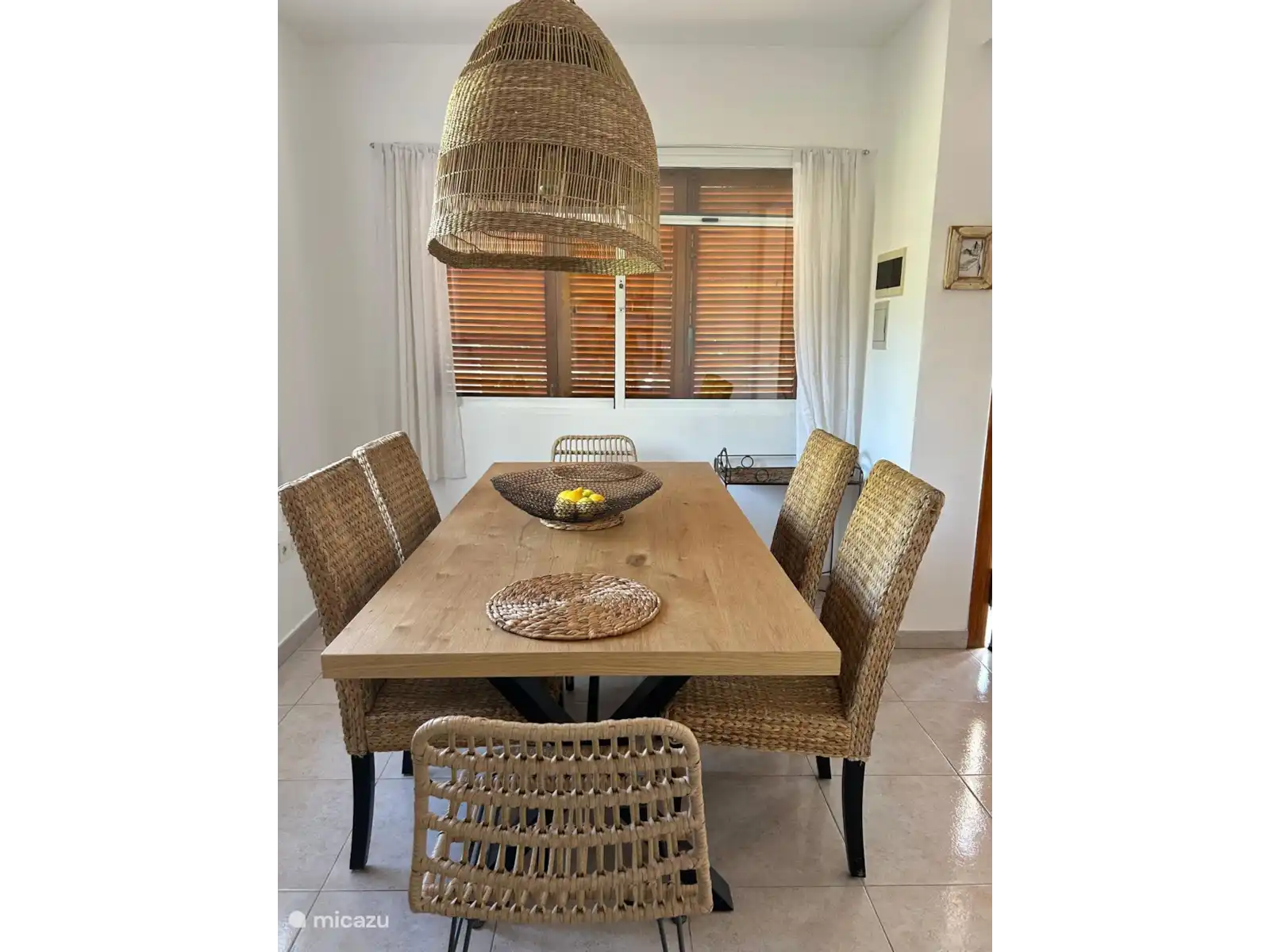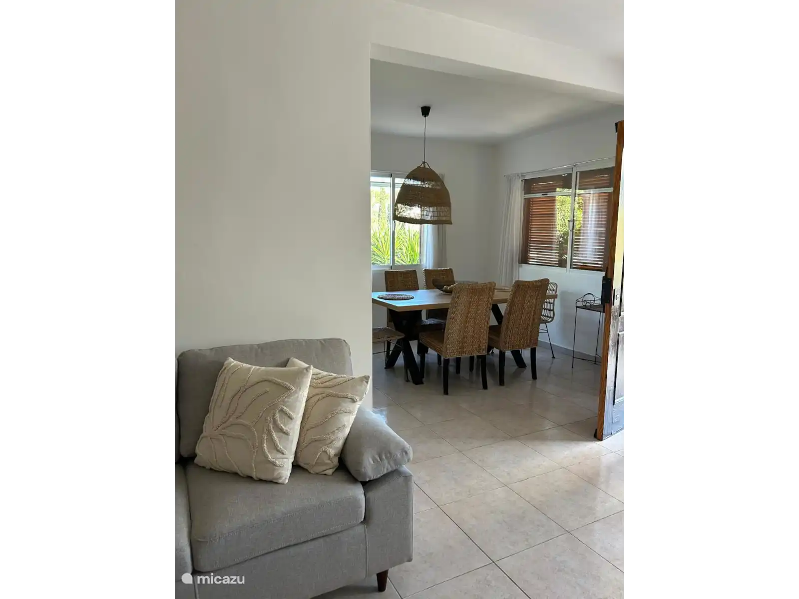 Kitchen, dining room and lounge open to the terrace. All flooring is tiled and cool for summer. Air conditioning and fan. Communal pool available.