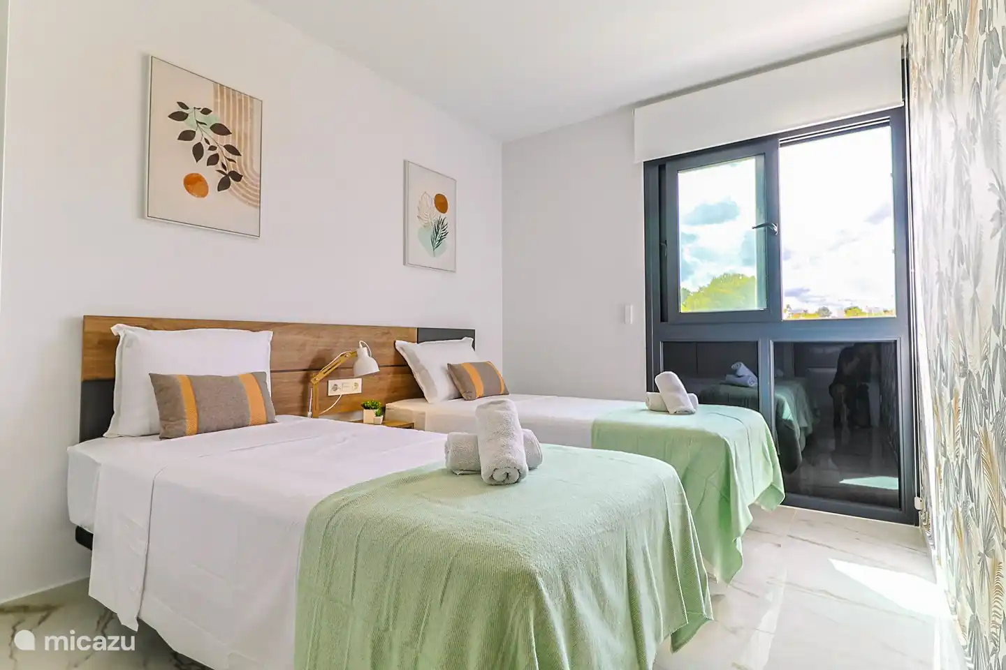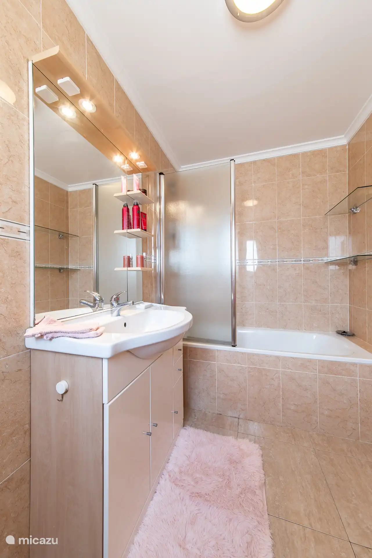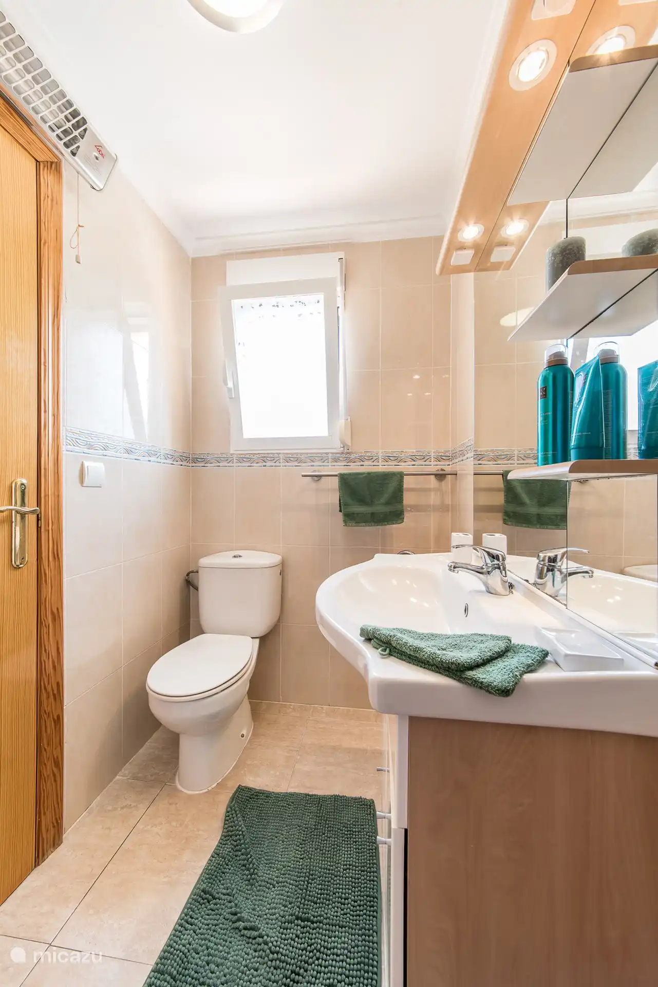 Enjoy your breakfast on the terrace, located on the first floor, while you let the morning sun work on you. The apartment has 2 bedrooms (1x double bed and 2x single beds that can be linked to form a double bed) and 2 bathrooms, one of which is en suite. The spacious living room with open kitchen is equipped with all necessary equipment. In addition, a washing machine, towels and bed linen are provided.