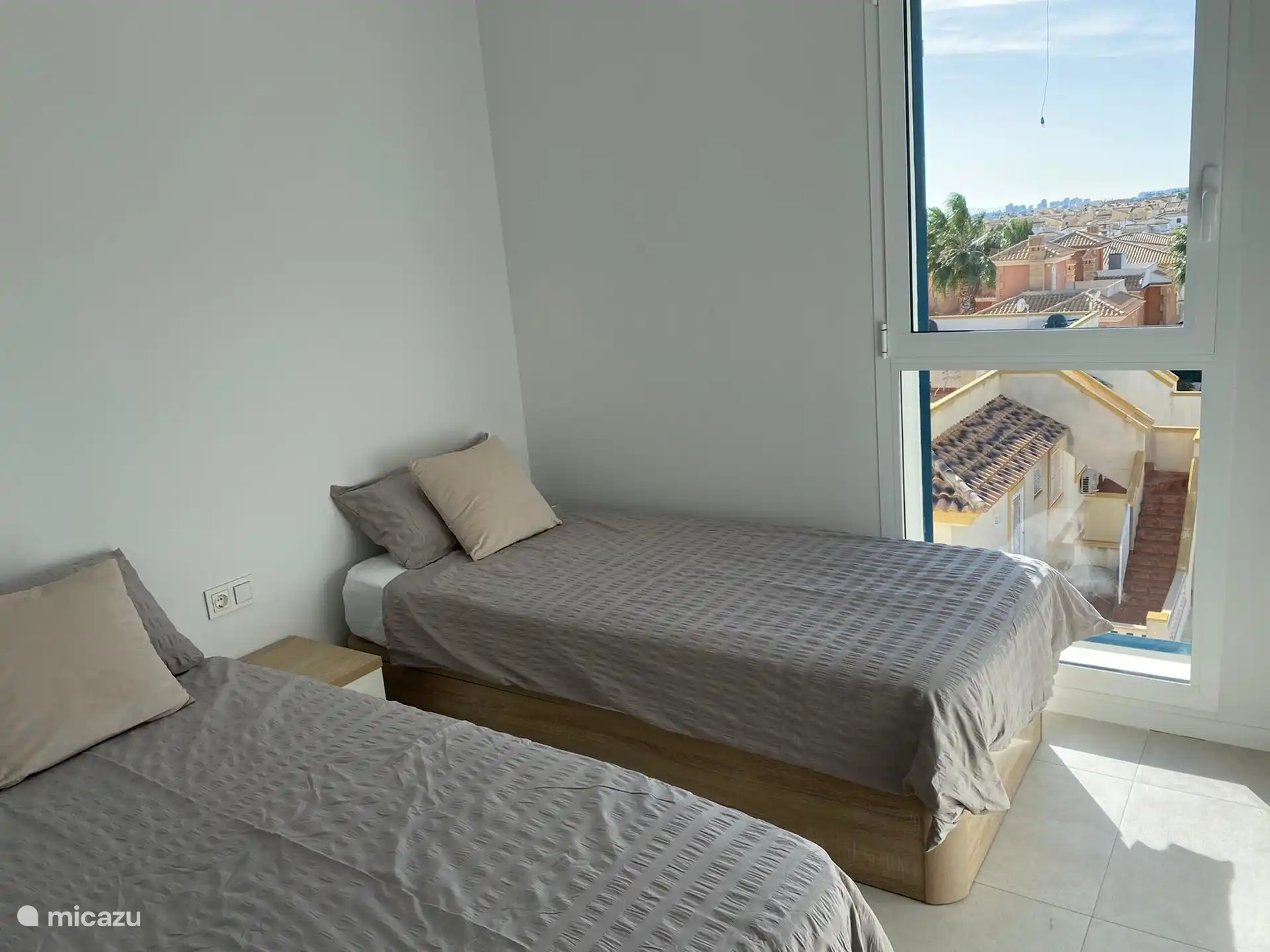 - Bedrooms: One room with a double bed and one room with two single beds.