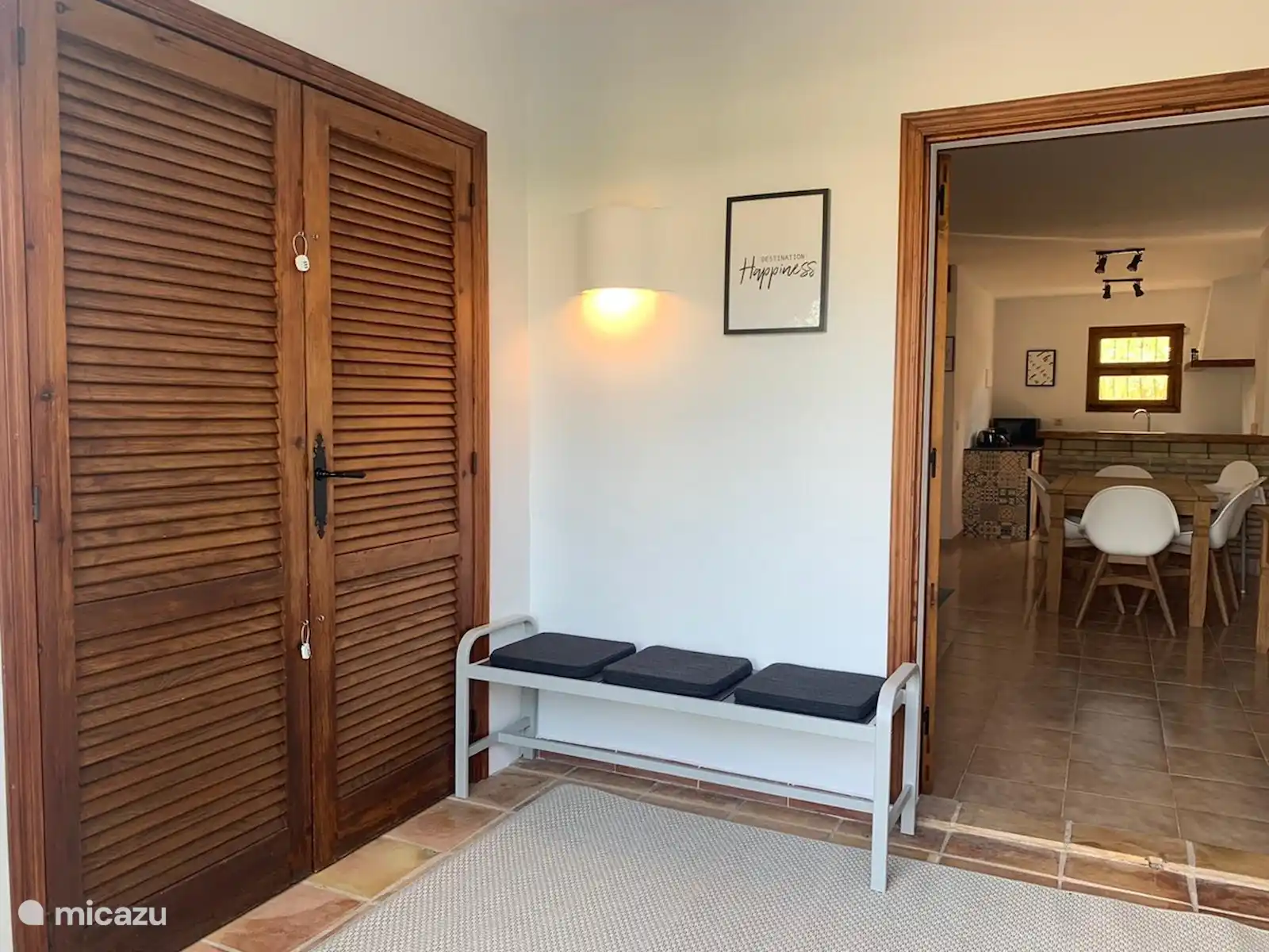 The living room offers plenty of space to eat together (6 people), relax on the spacious corner sofa and watch TV. It is a smart TV where you can log in to your own Netflix, Videoland etc. account. The living room and kitchen can be made cool (and warm for the winter months) by means of an air conditioner. Wi-Fi is available.