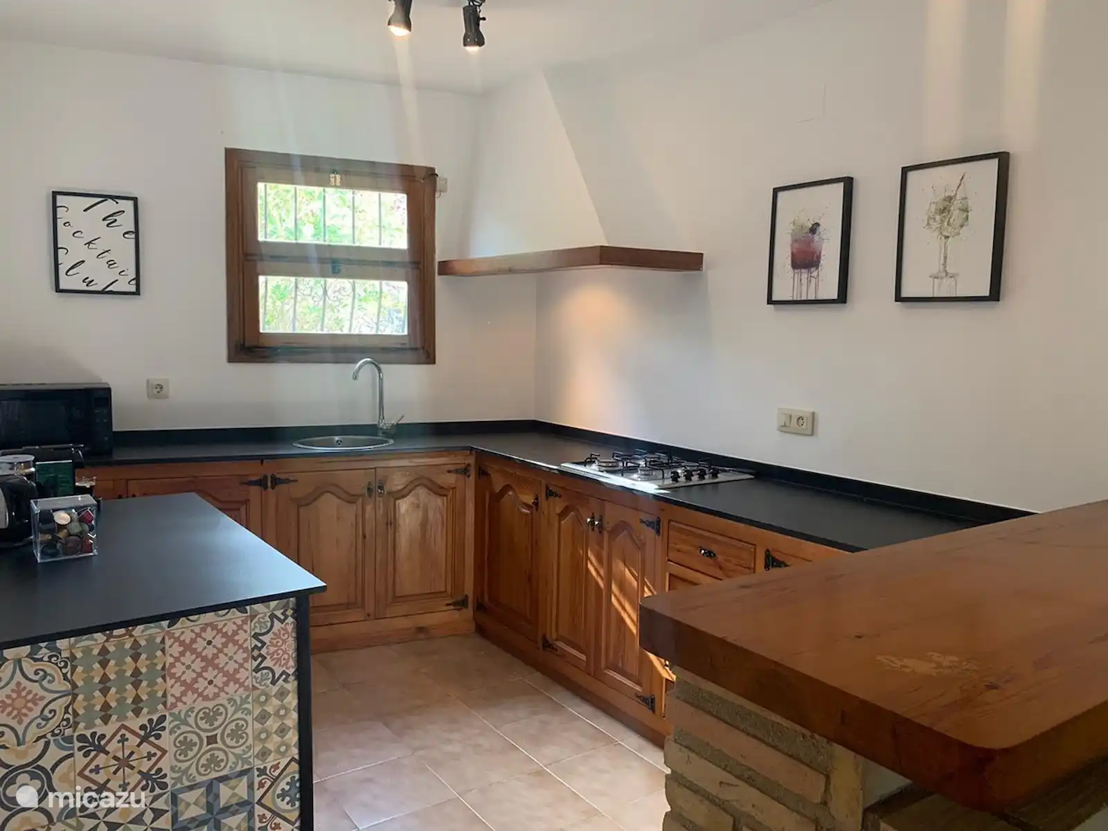 The kitchen is equipped with a gas hob, combi microwave, dishwasher and 2 table top refrigerators, both with a freezer compartment. A Nespresso coffee machine and an electric kettle are also provided. In addition, the kitchen is equipped with all possible kitchen utensils.