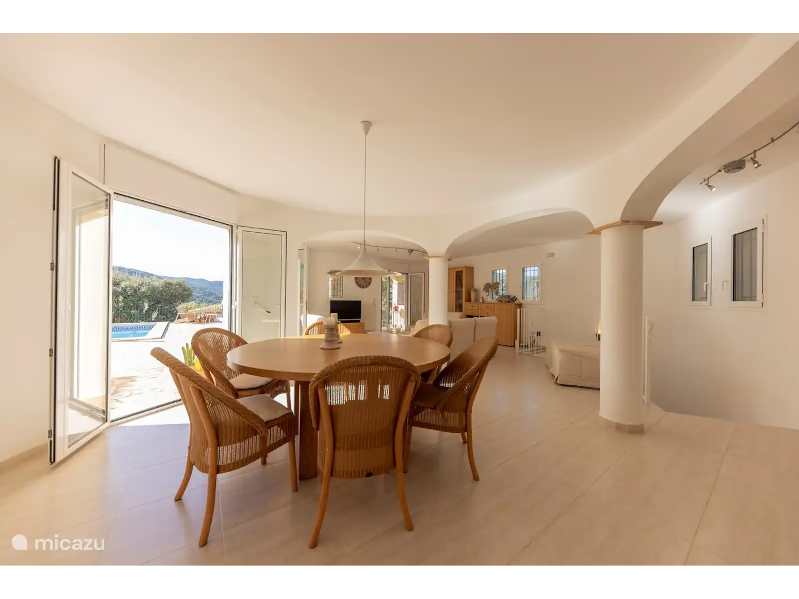 Cozy living-dining room and direct access to the pool and terrace. Complete semi-open kitchen with direct access to terrace, including BBQ. WIFI and international TV available. Furthermore, 3 large bedrooms, one bedroom with double bed, two bedrooms with a double bed (1 pers mattresses), 3 bathrooms with toilet, spacious driveway with space for cars. The driveway is closed with a gate.