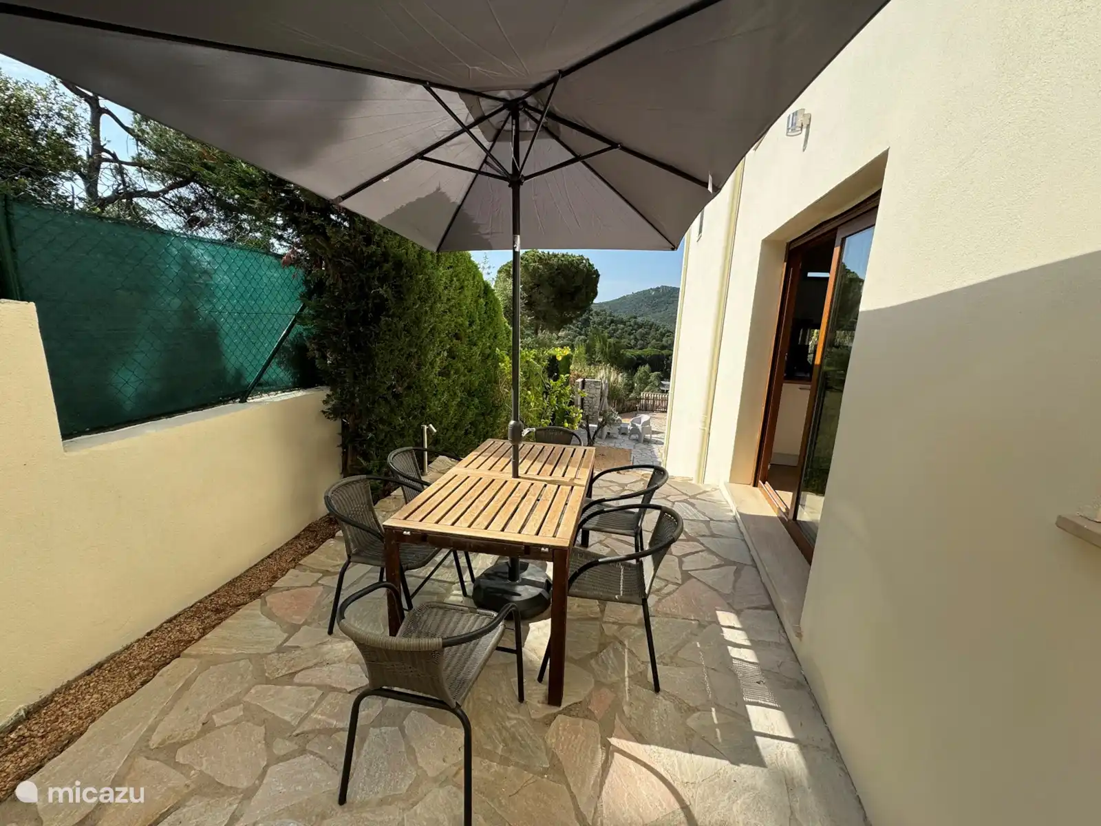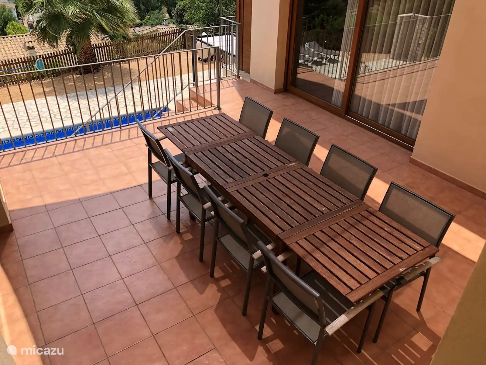 Middle terrace: between the master bedroom and the living room there is a large terrace equipped with a dining table for 8 people with a beautiful view of the mountains and the pool. The terrace is protected by a shade cloth that blocks 98% of VU light and provides the necessary coolness.